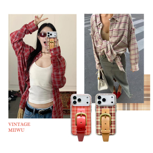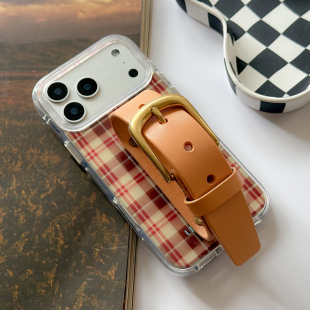 铜扣腕带全包手机保护套16 promax经典 15手机保护壳 复古格纹高质感植糅牛皮腕带适用苹果系列iphone