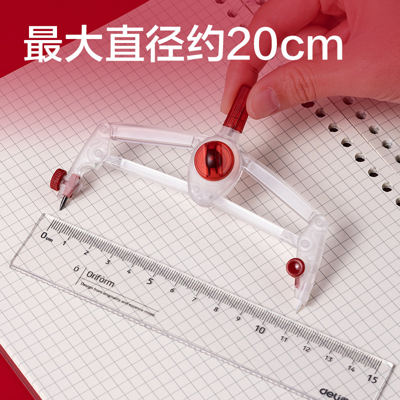 得力圆规无金属画圆工具学生考试专用连中三元 零金属铅笔圆规套装
