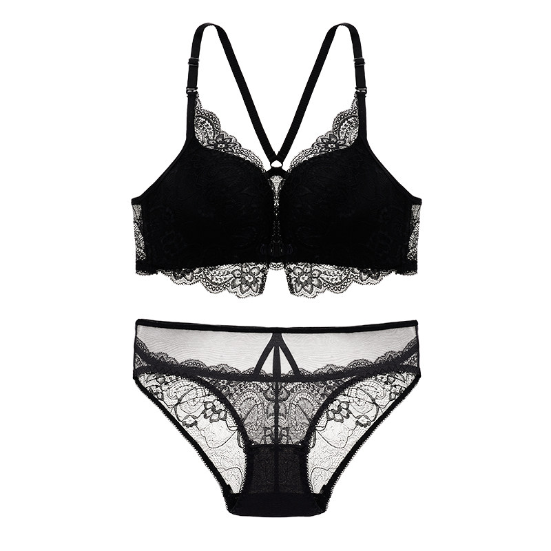 蕾丝美背文胸女聚拢无钢圈小胸罩厚薄款 少女士前扣性感内衣裤