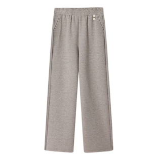 子加绒加厚长裤 妈妈春秋洋气阔腿毛呢直筒裤 中老年女松紧腰休闲裤