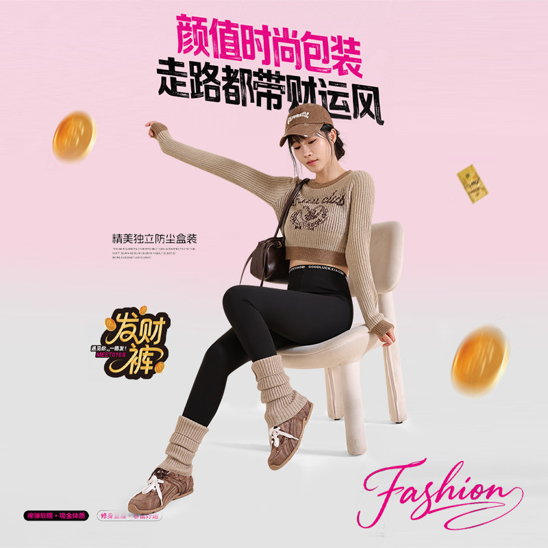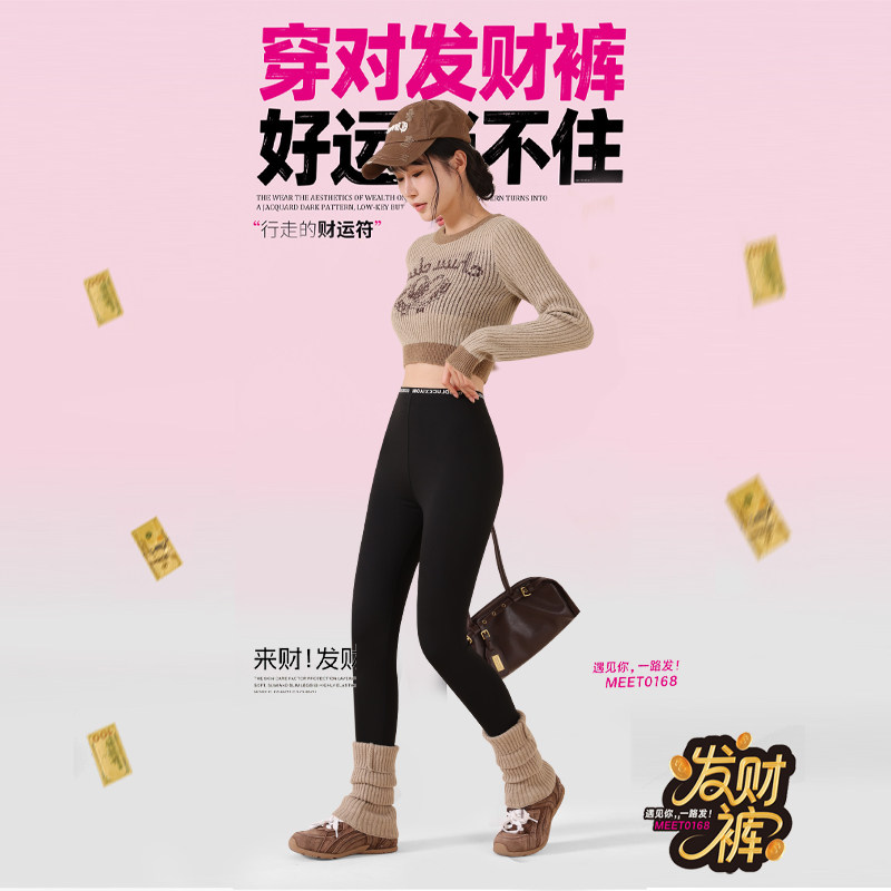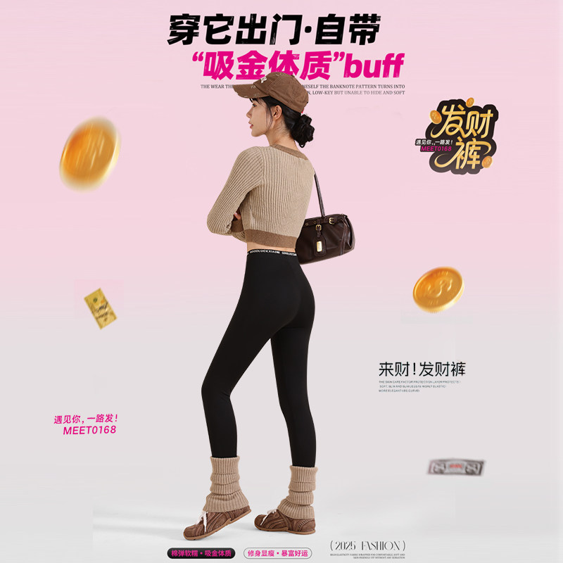 2025新款 收腹九分加绒打底裤 字母显瘦高腰 云朵棉感保暖秋裤 发财裤