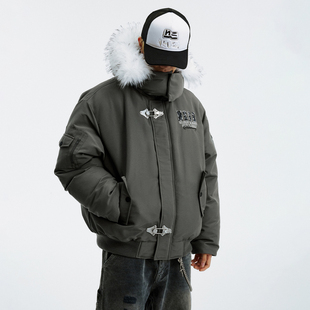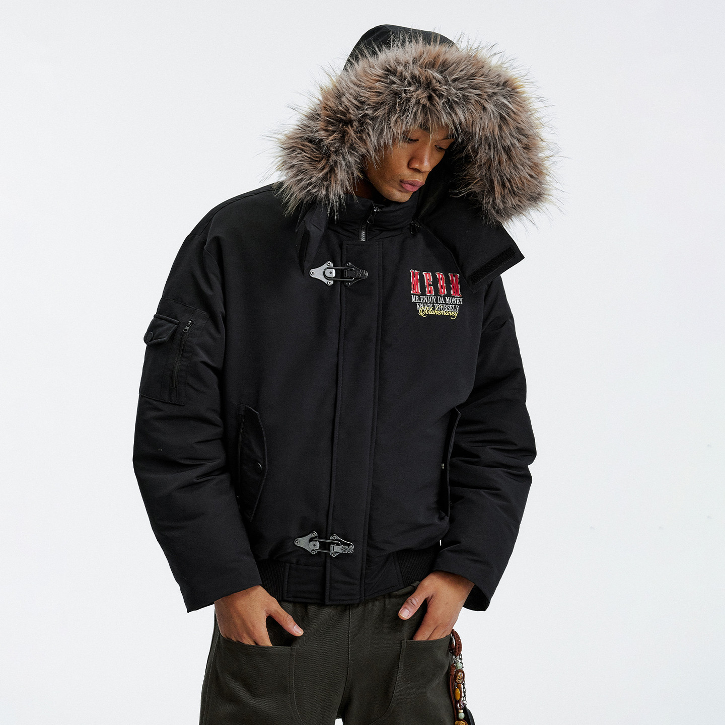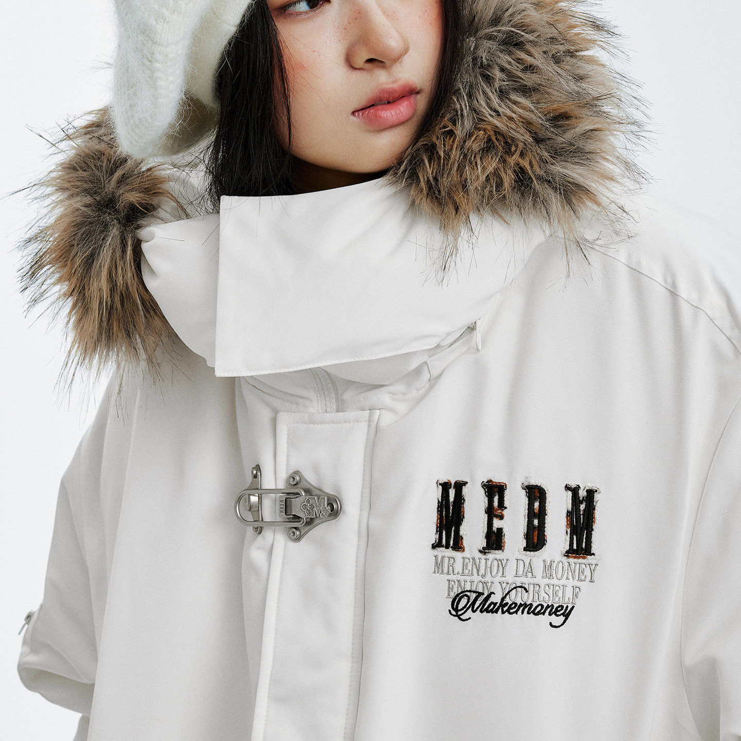 MEDM 情侣外套 90鸭绒可拆卸撞色毛领马毛派克保暖休闲羽绒服冬季