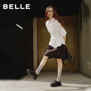 厚底英伦风单鞋 百丽复古牛津鞋 黑色小皮鞋 新款 子B3010AM6 女26春季