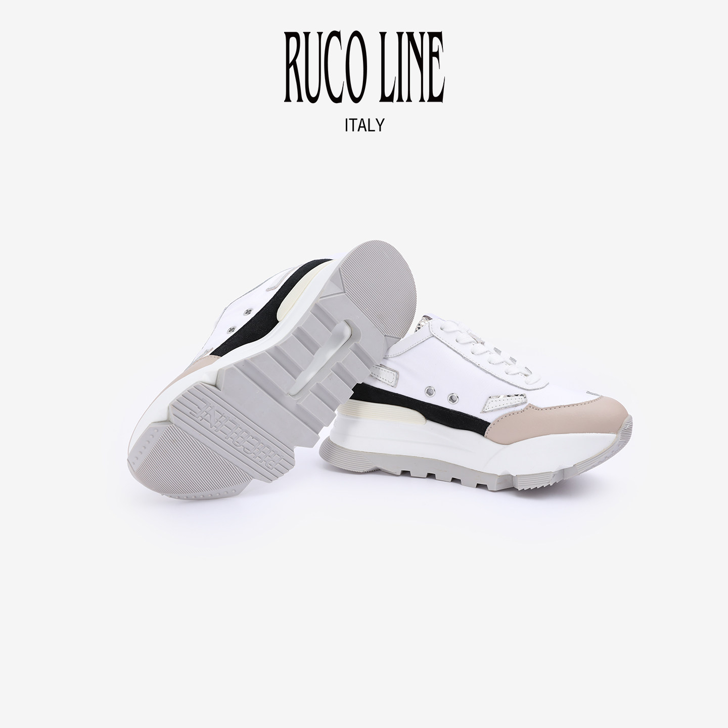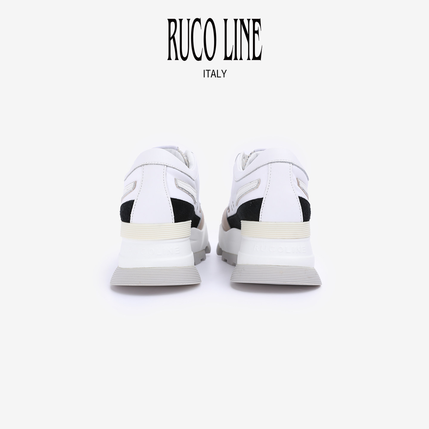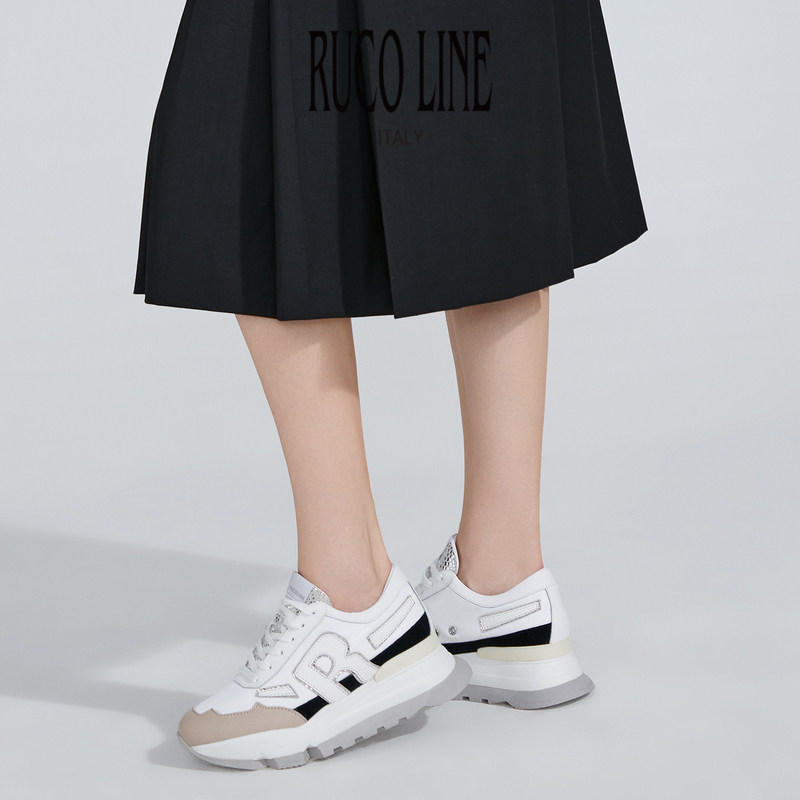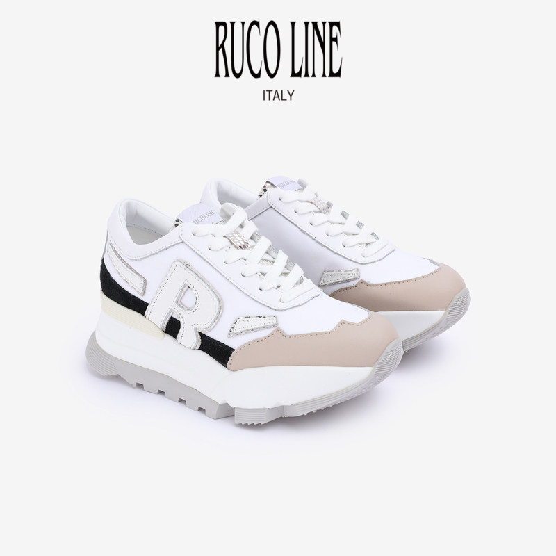 Line如卡莱女牛皮革拼色休闲跑鞋 Ruco 7cm厚底增高鞋 天猫独家