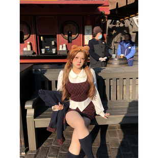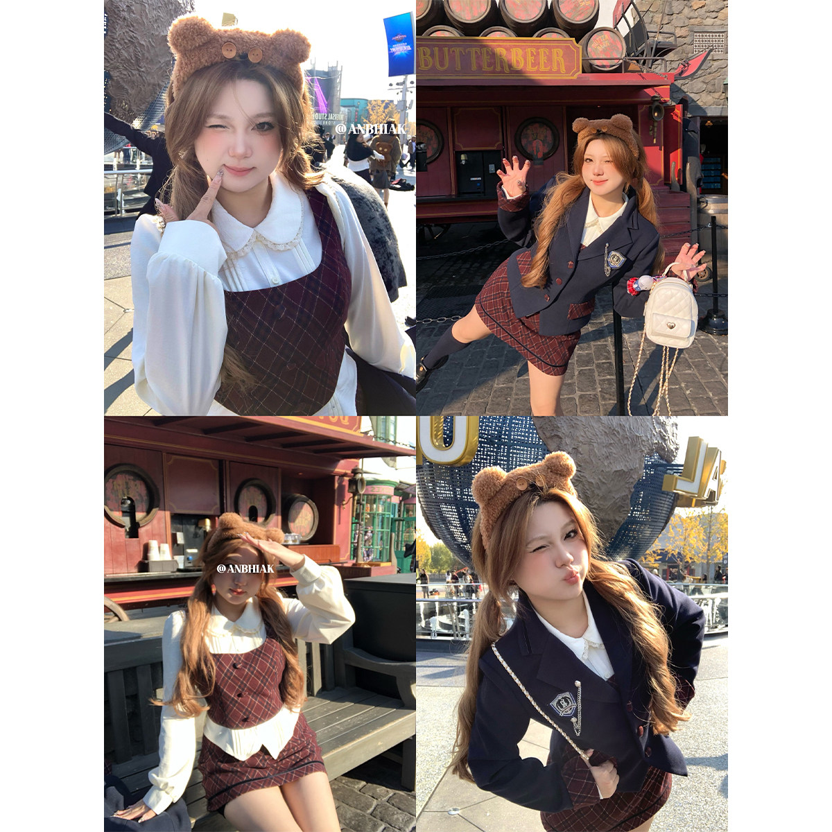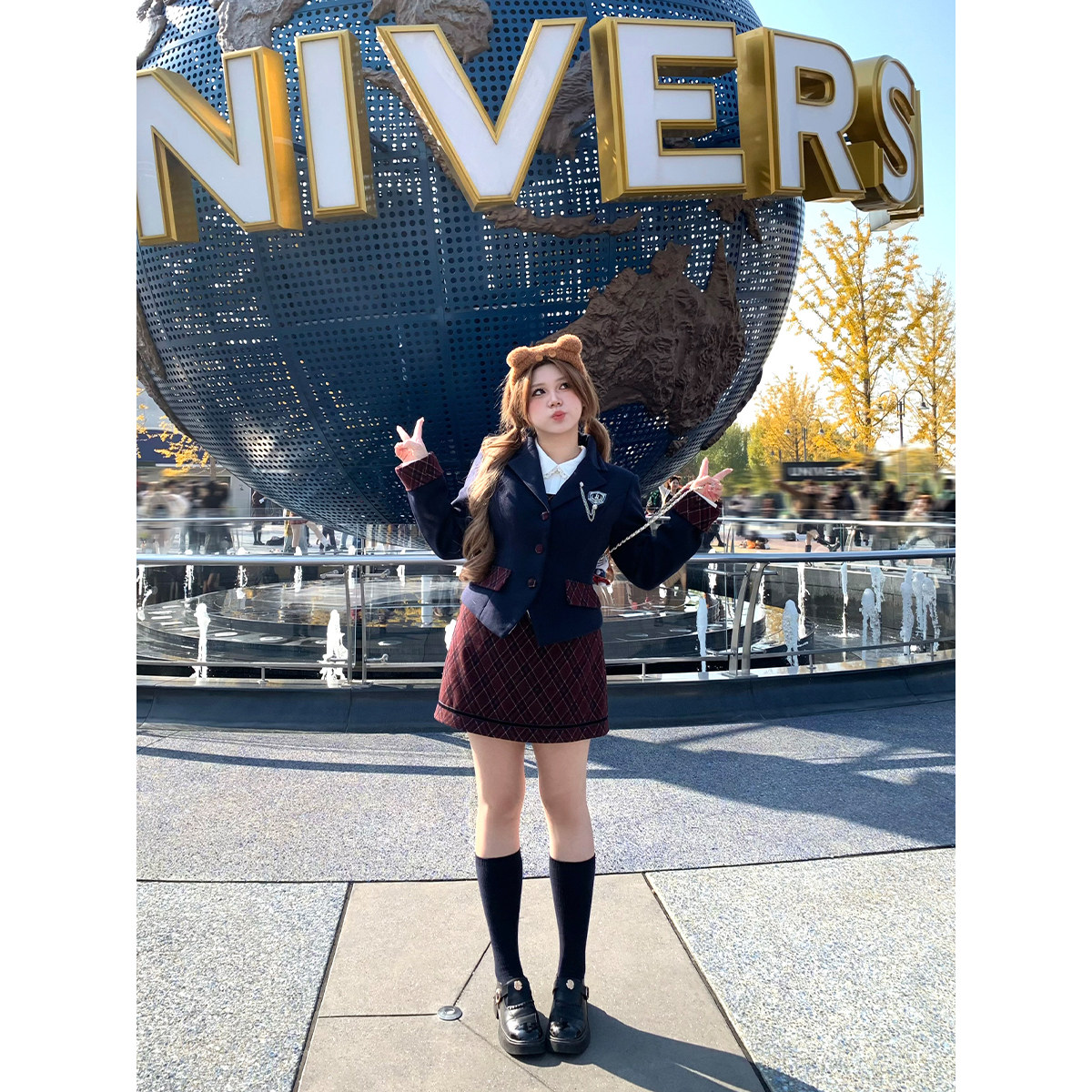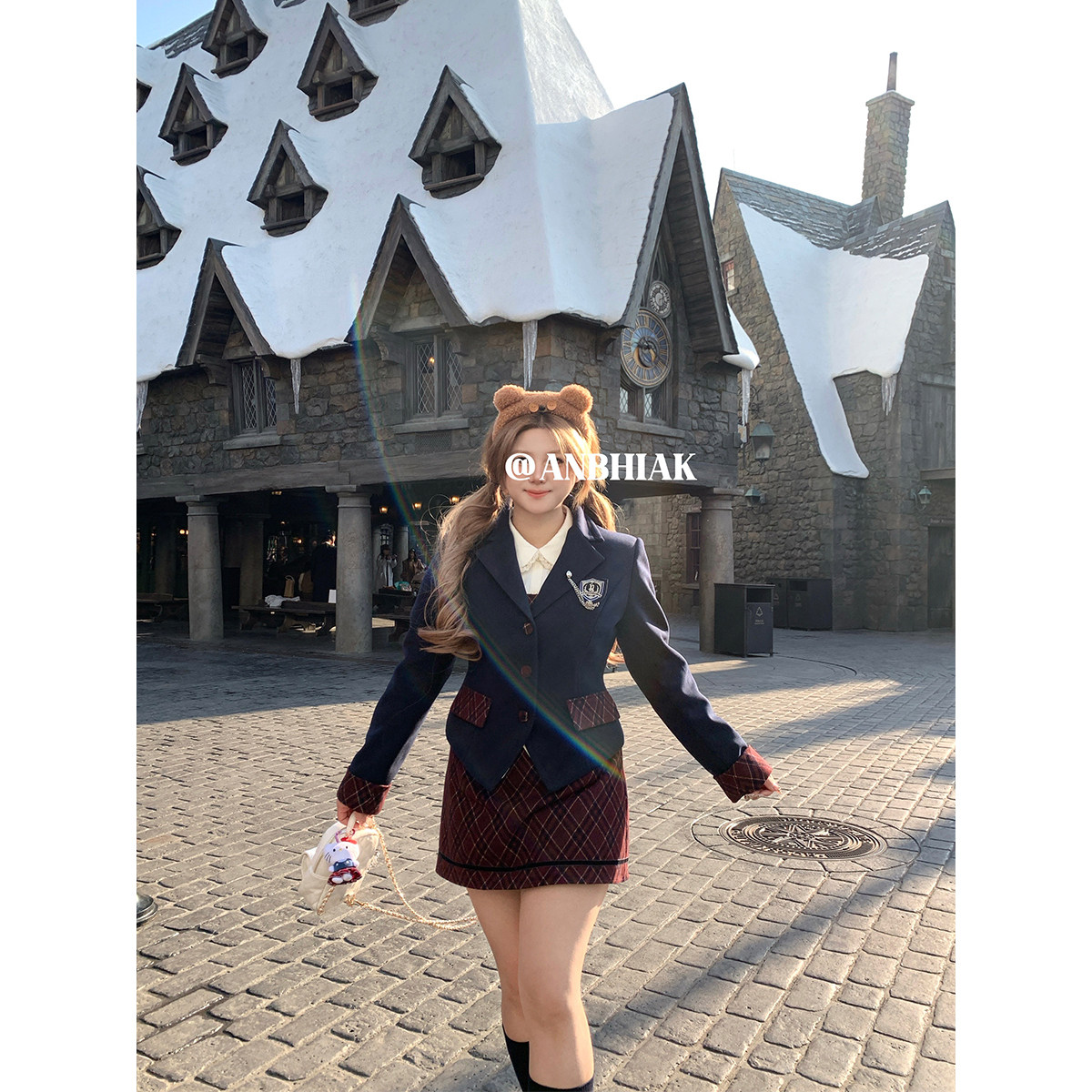 收腰显瘦四件套装 安妮不火英伦学院风夹棉呢料西装 套组女微胖大码