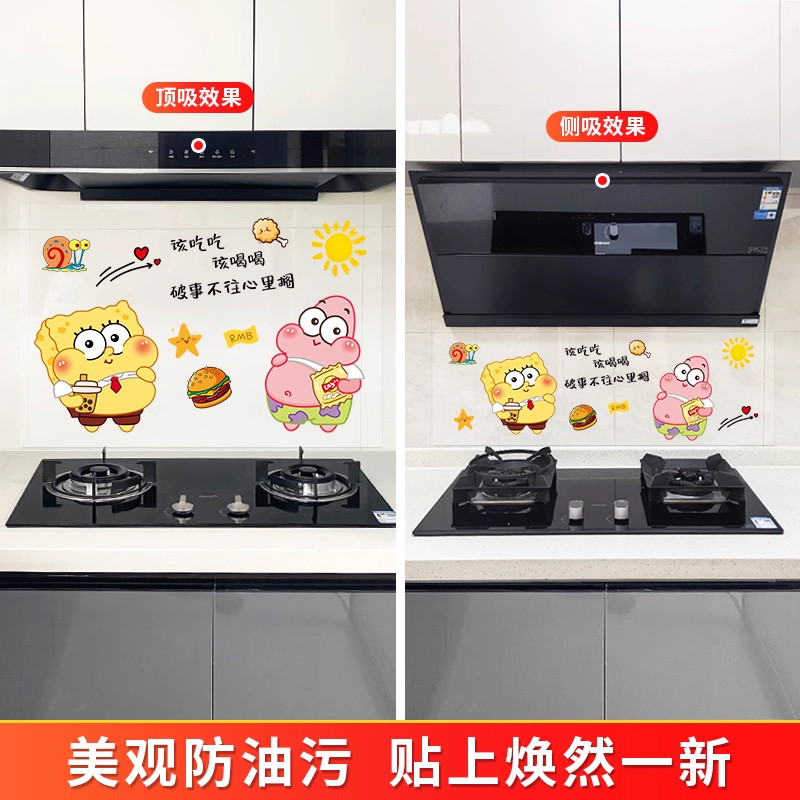 海绵宝宝厨房防油贴纸墙壁装 饰静电贴膜灶台油烟墙贴防火墙面墙纸