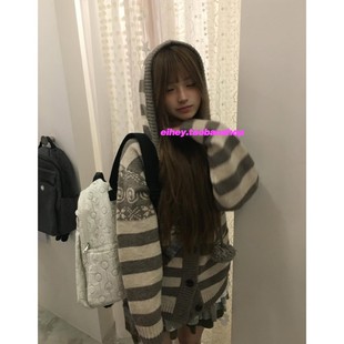 毛衣纽扣开衫 日系条纹连帽针织衫 休闲外套女 新款 eihey诶嘿25秋季
