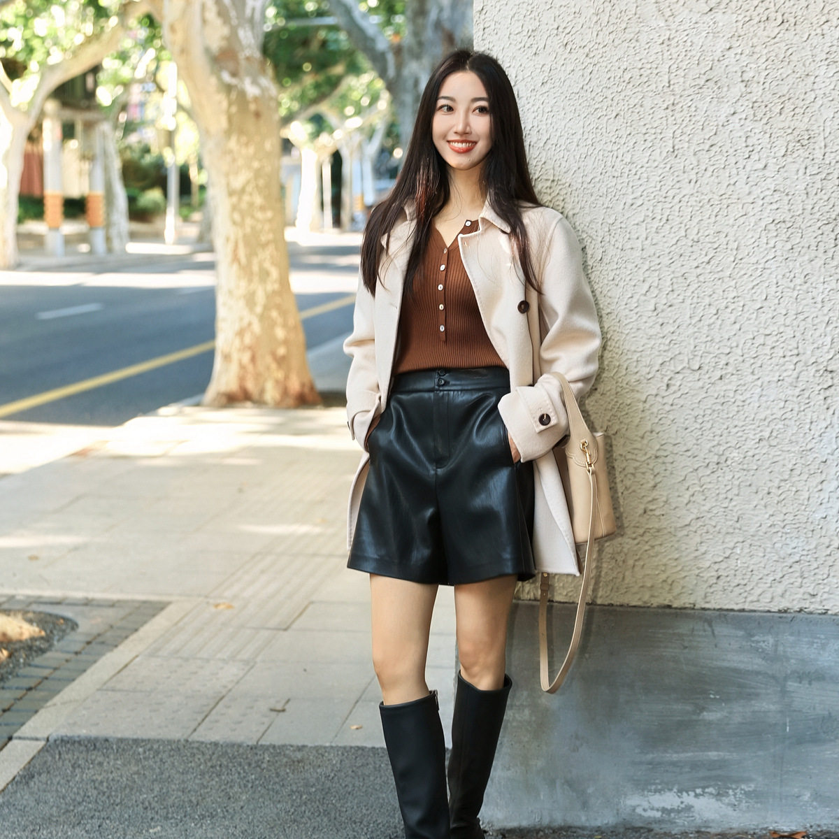EP雅莹25新款 100%山羊绒米白色廓形呢外套8211A 阿拉善羊绒大衣