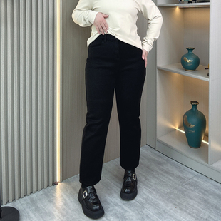 梨型身材加绒九分裤 女胖mm秋冬弹力显瘦高腰烟管裤 直筒牛仔裤 大码