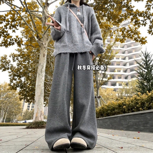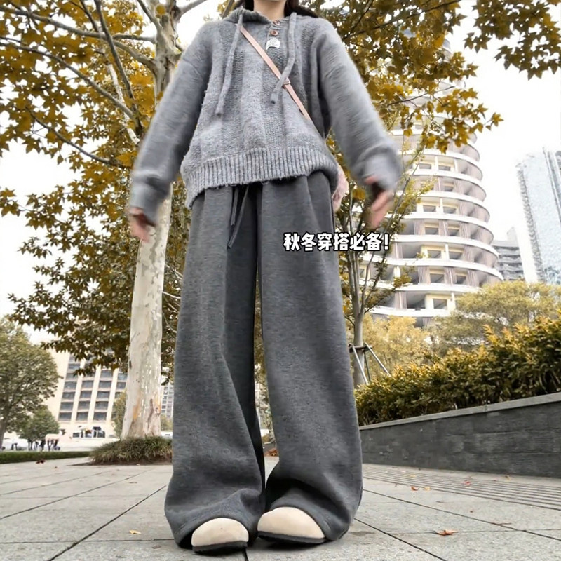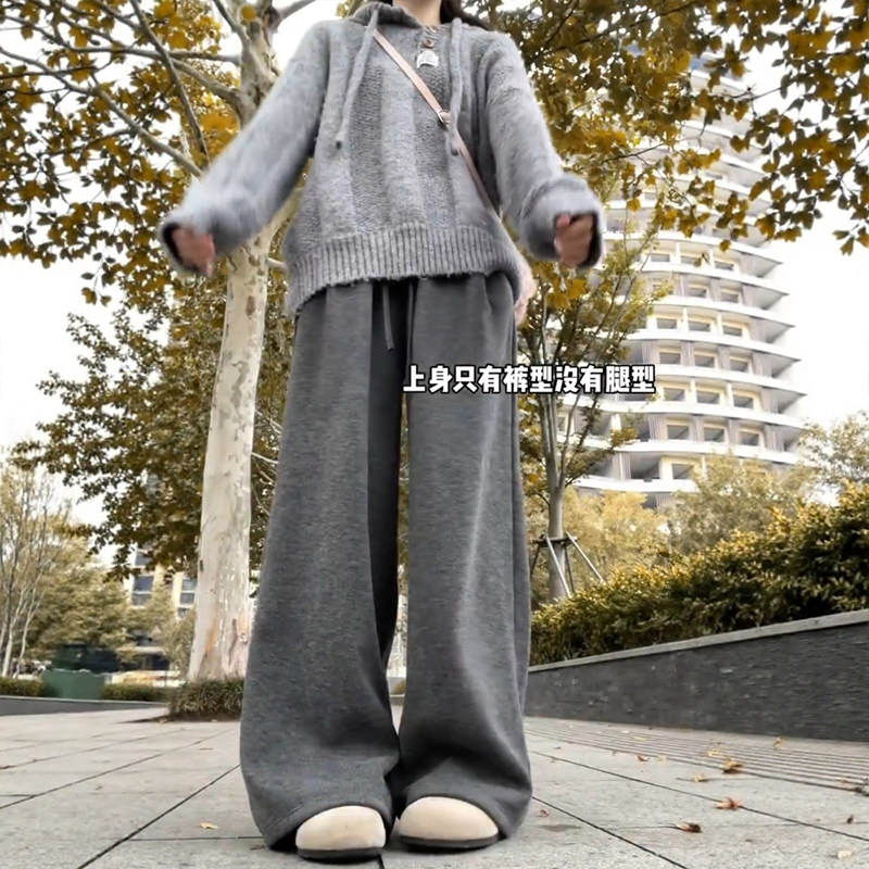 女款 小个子今年流行梧桐裤 大码 子运动阔腿裤 秋冬加绒裤 灰色糯米裤