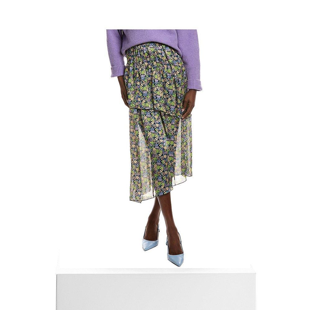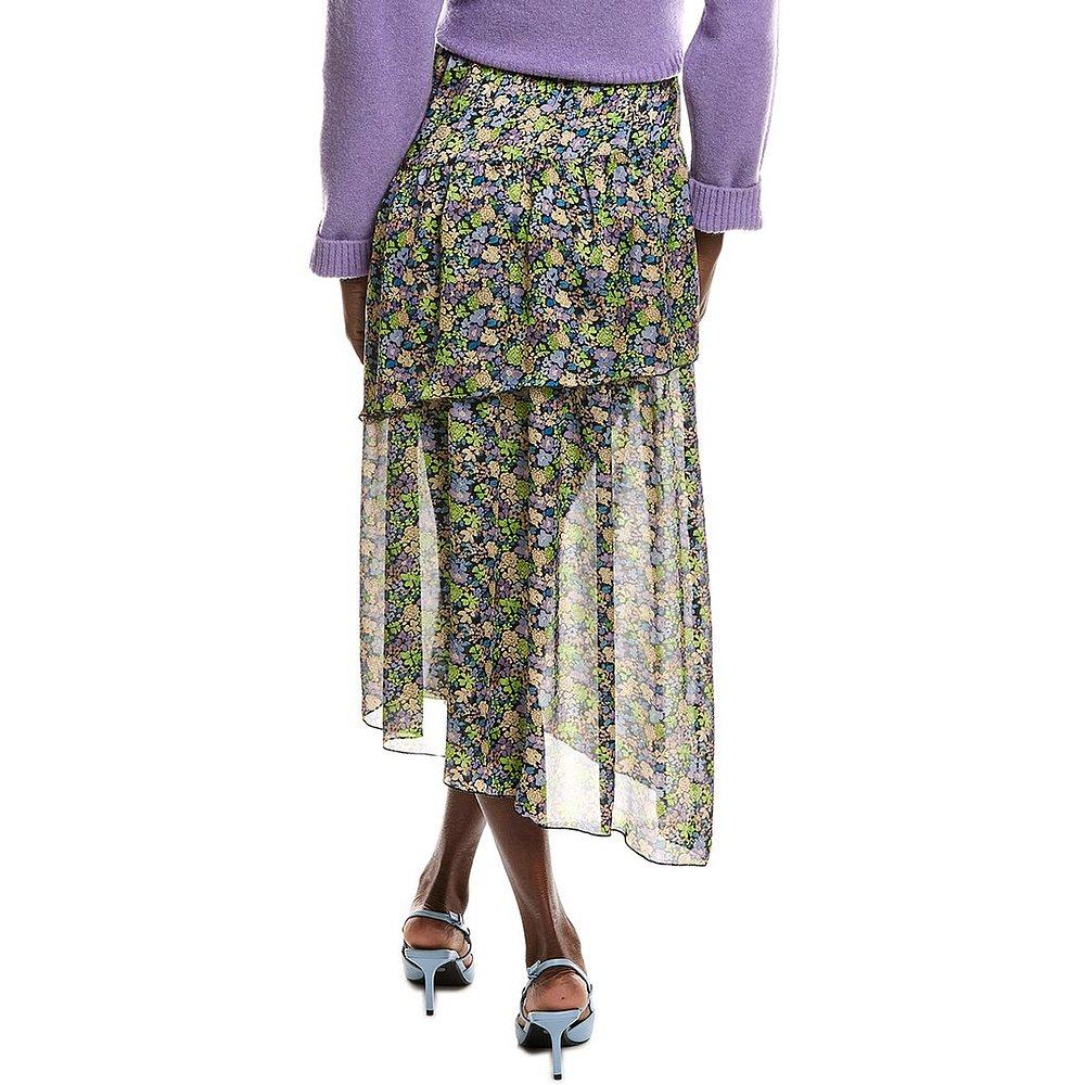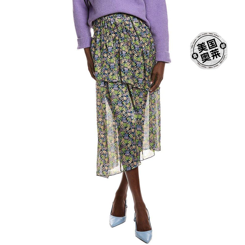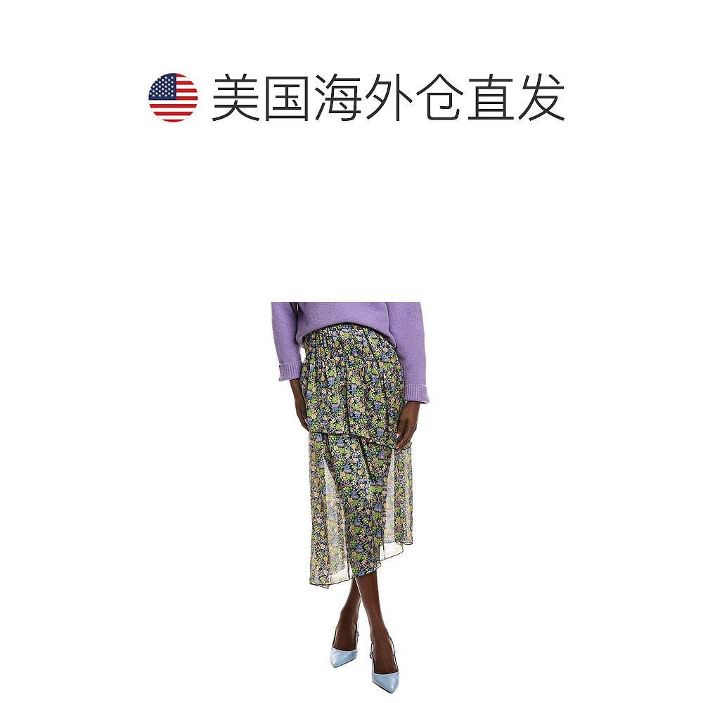 美国奥莱直发半身裙a字裙 黑色 自营Maje Bias褶边裙