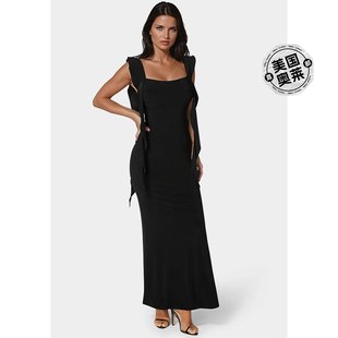 Jersey Cascade Ruffle 自营Bebe black Dress 美国奥 Women