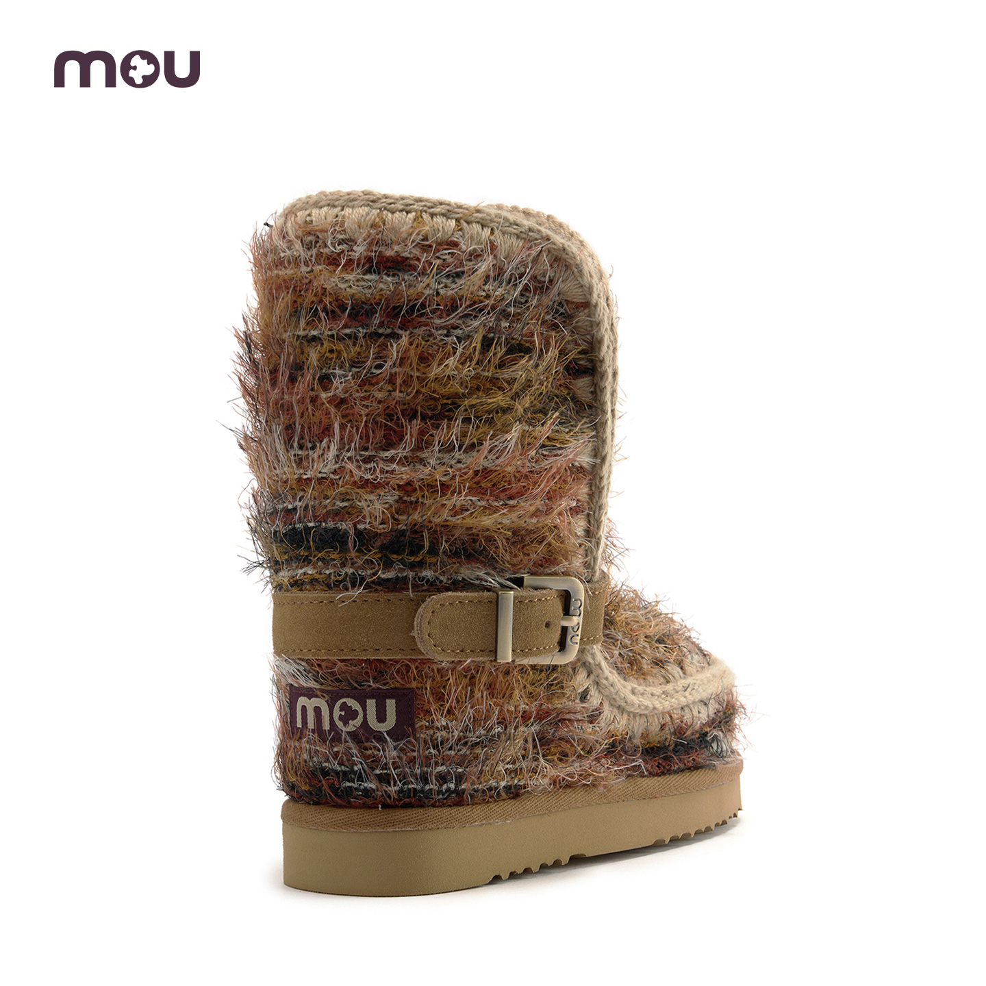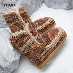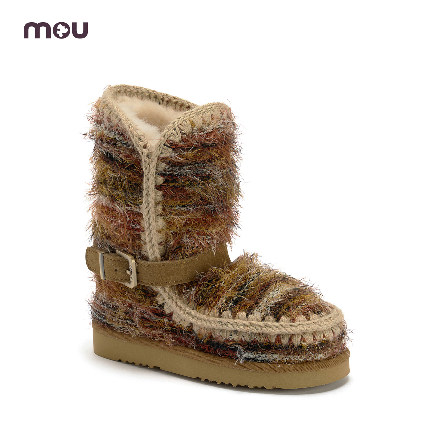 老钱风彩毛扣带羊毛雪地靴中筒靴冬靴 爱斯基摩24 mou2025冬季 新款