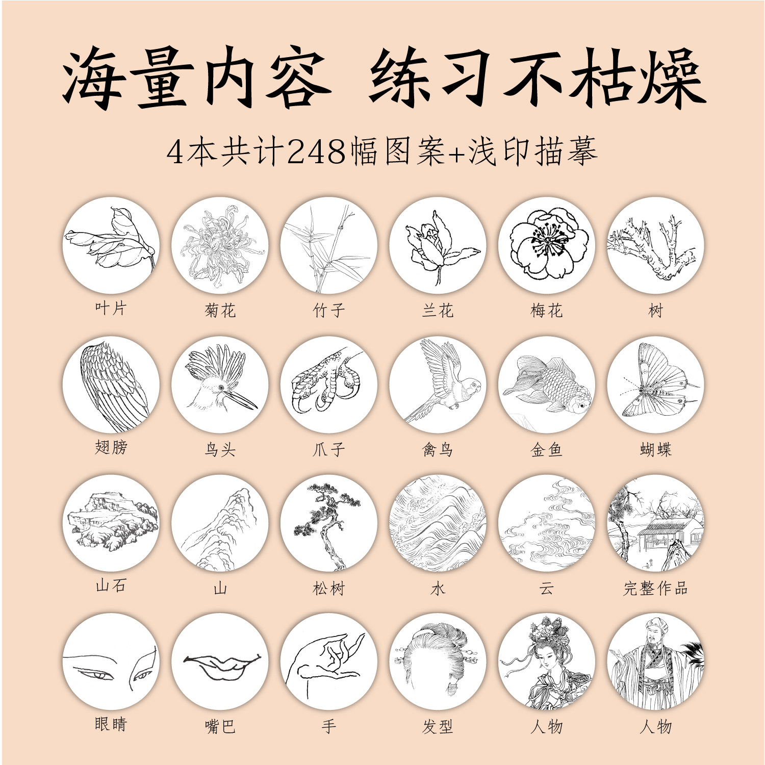 加厚16k素描本中国画山水人物花卉动物临摹画册白描入门速写本儿童填色本提升兴趣涂鸦卷国画入门教程