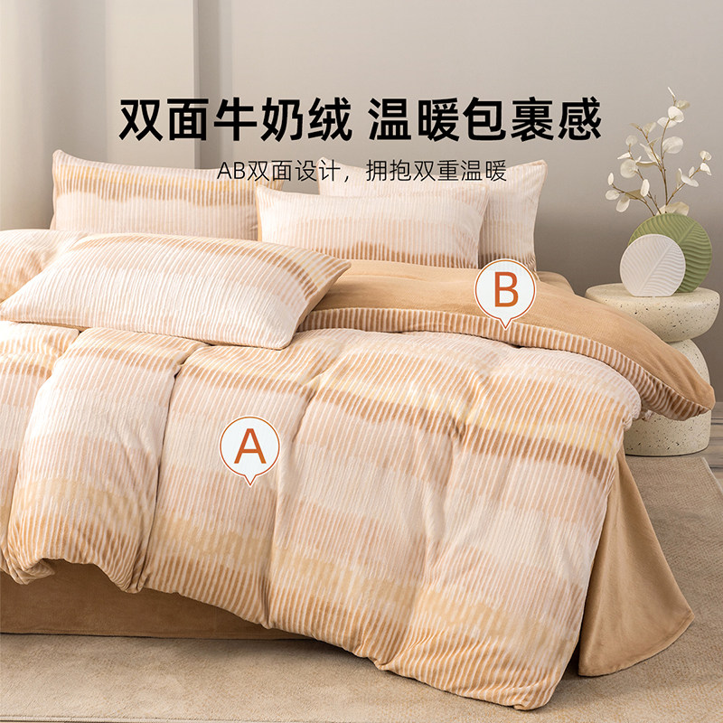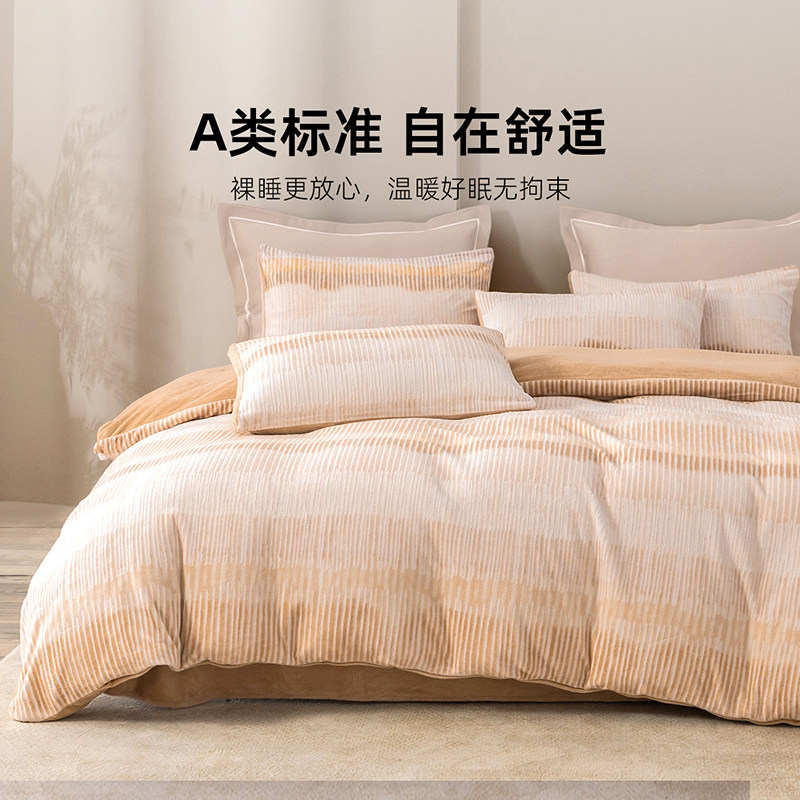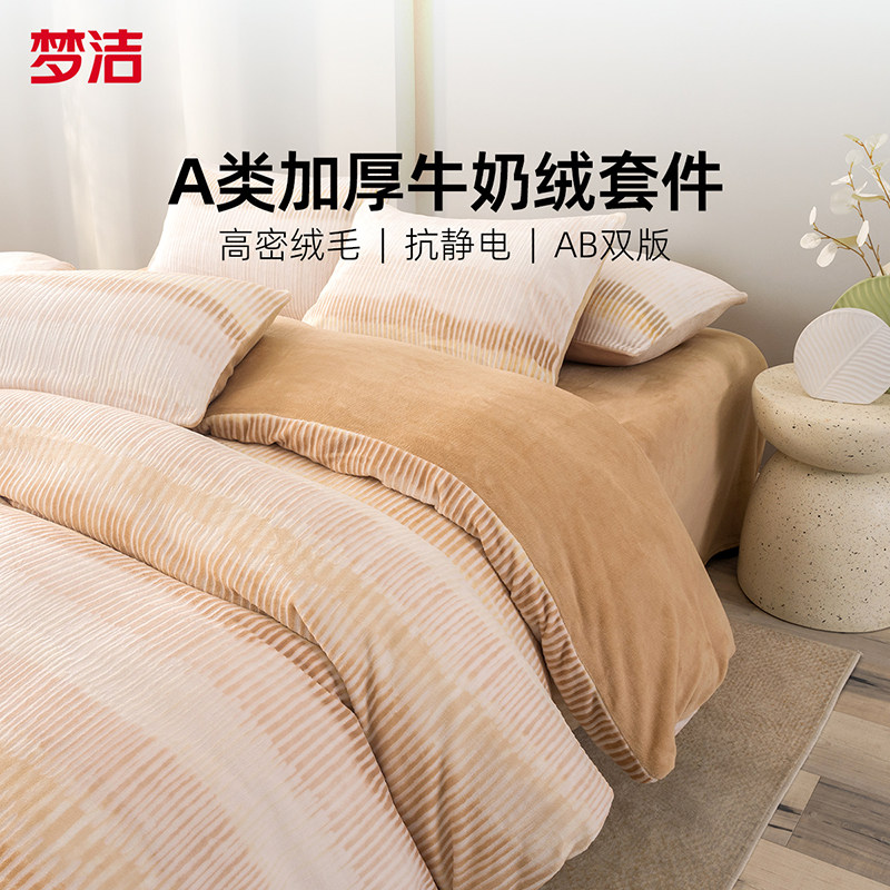 梦洁牛奶绒床上四件套加绒床单248X248被套秋冬珊瑚绒床品金伯利