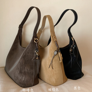 小脏柜 慵懒风通勤大容量复古绒面单肩斜挎托特水桶包子母包 新款