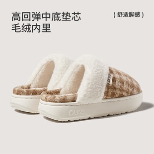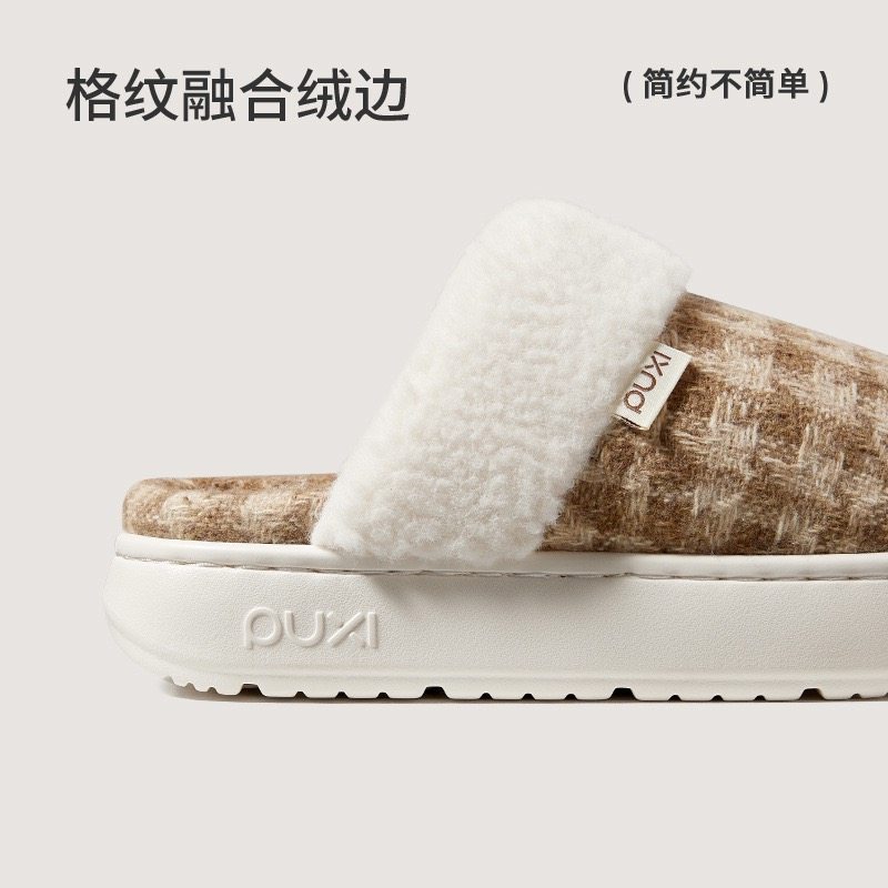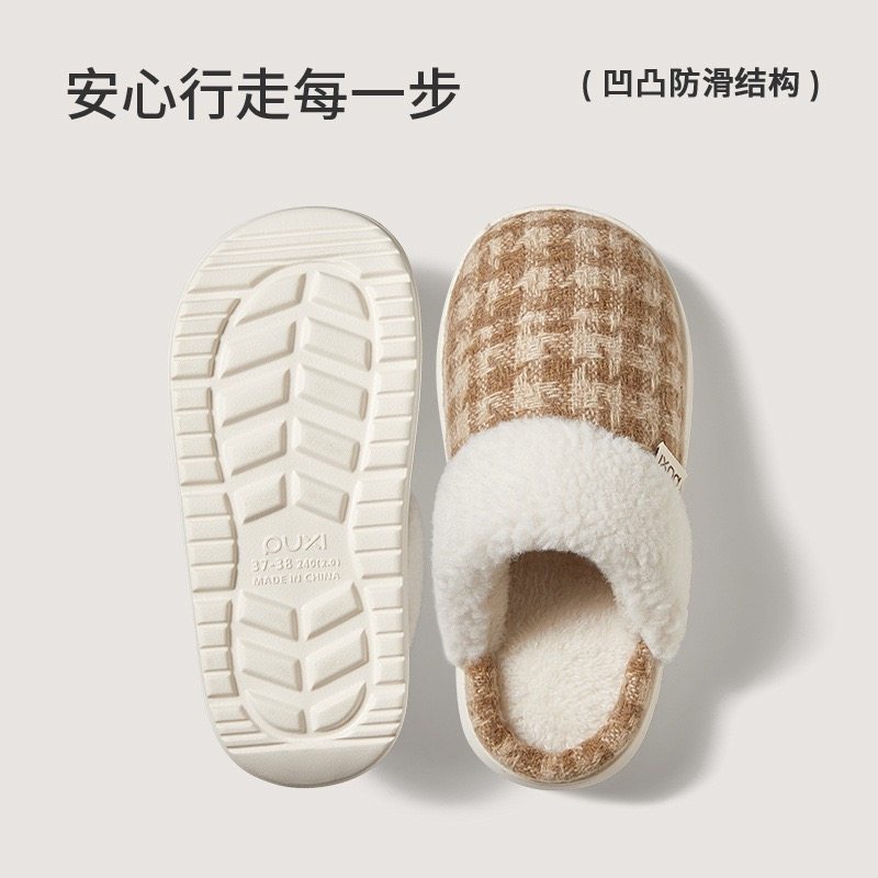慕沙千鸟格纹加绒棉拖鞋 8024