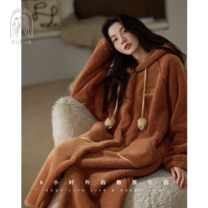 秋冬浴袍可穿浴巾女家用珊瑚绒吸水柔软速干浴裙洗澡睡袍睡衣连帽