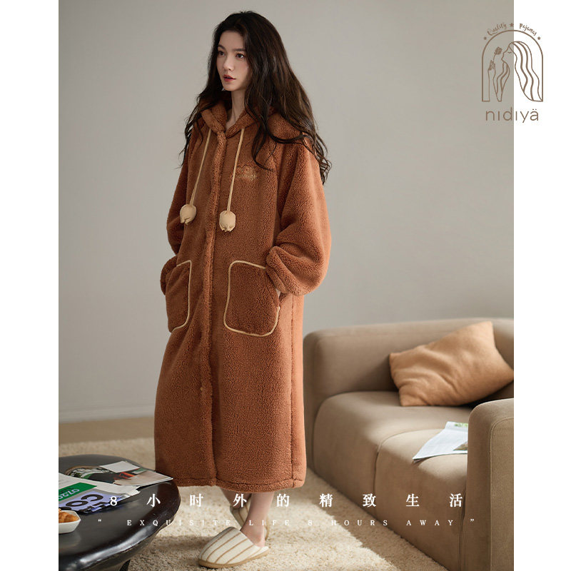 中长款 冬保暖睡衣家居服套装 睡袍毛绒浴袍加厚情侣款 三层加厚