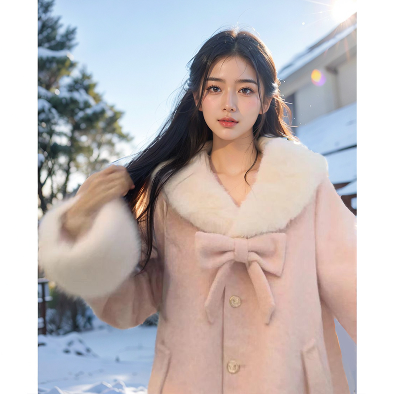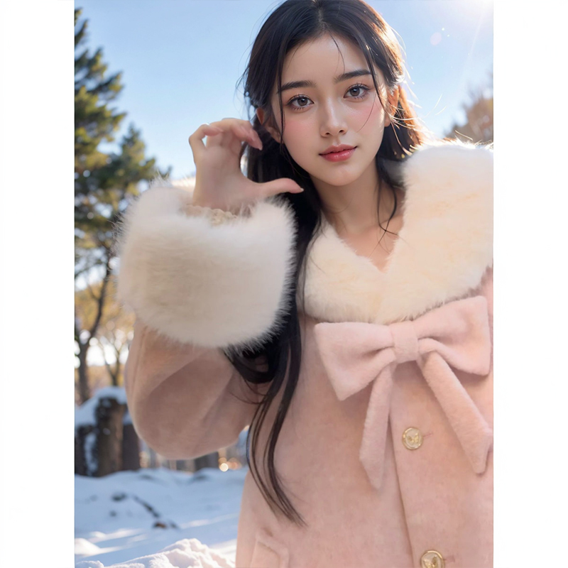 甜美加厚保暖毛毛拼接外套 韩版 冬季 长半裙两件套装 雪国精灵
