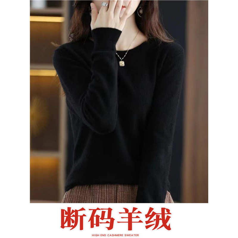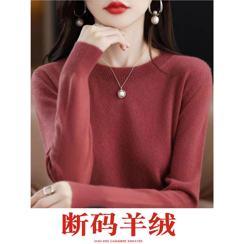 女低圆领宽松显瘦毛衣百搭100羊毛针织打底衫 2025秋冬新款 羊绒衫