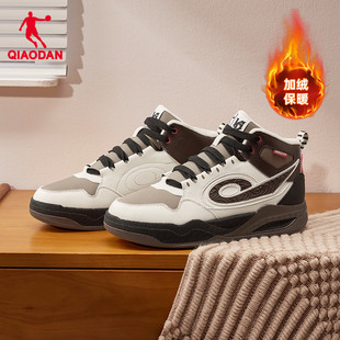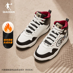 黑色加绒休闲增高滑板鞋 新款 男2025冬季 乔丹传奇皮面保暖高帮板鞋