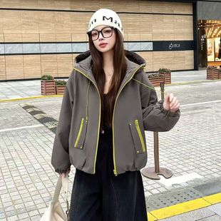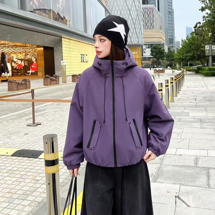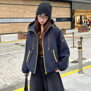 连帽加绒冲锋衣外套女冬季 宽松百塔加厚休闲夹克潮 韩系设计感时尚