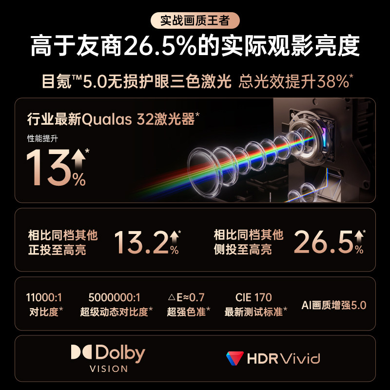 三色激光4K家用超高清高亮可连手机护眼百寸大屏卧室投屏家庭全球海外版 Ultra 坚果N5 投影机 低于补贴价
