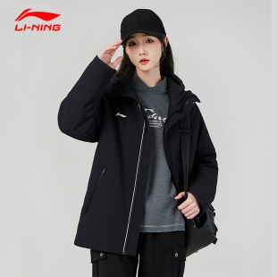 李宁运动风衣男女款 户外防风防泼水保暖连帽宽松百搭徒步登山外套