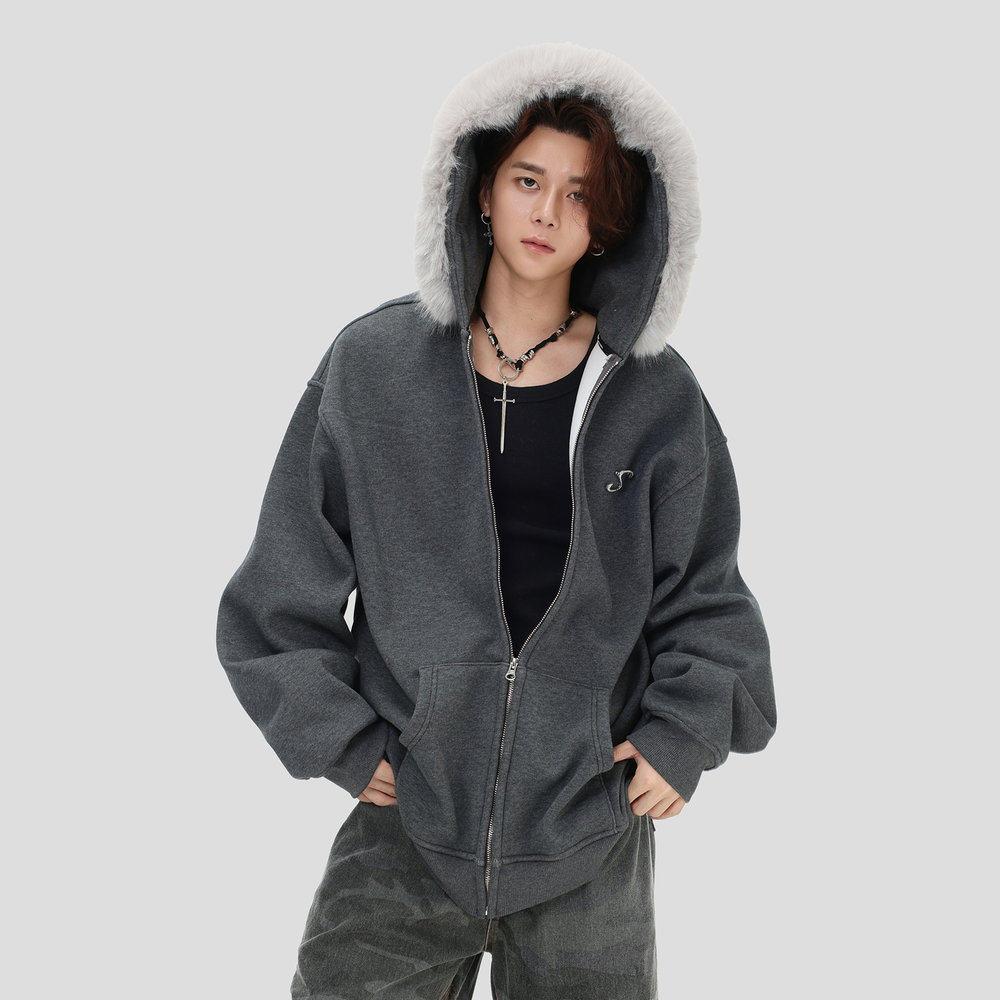 卫衣」宽松加绒连帽外套 「别针LOGO毛领开衫 NOPASS 国潮原创美式