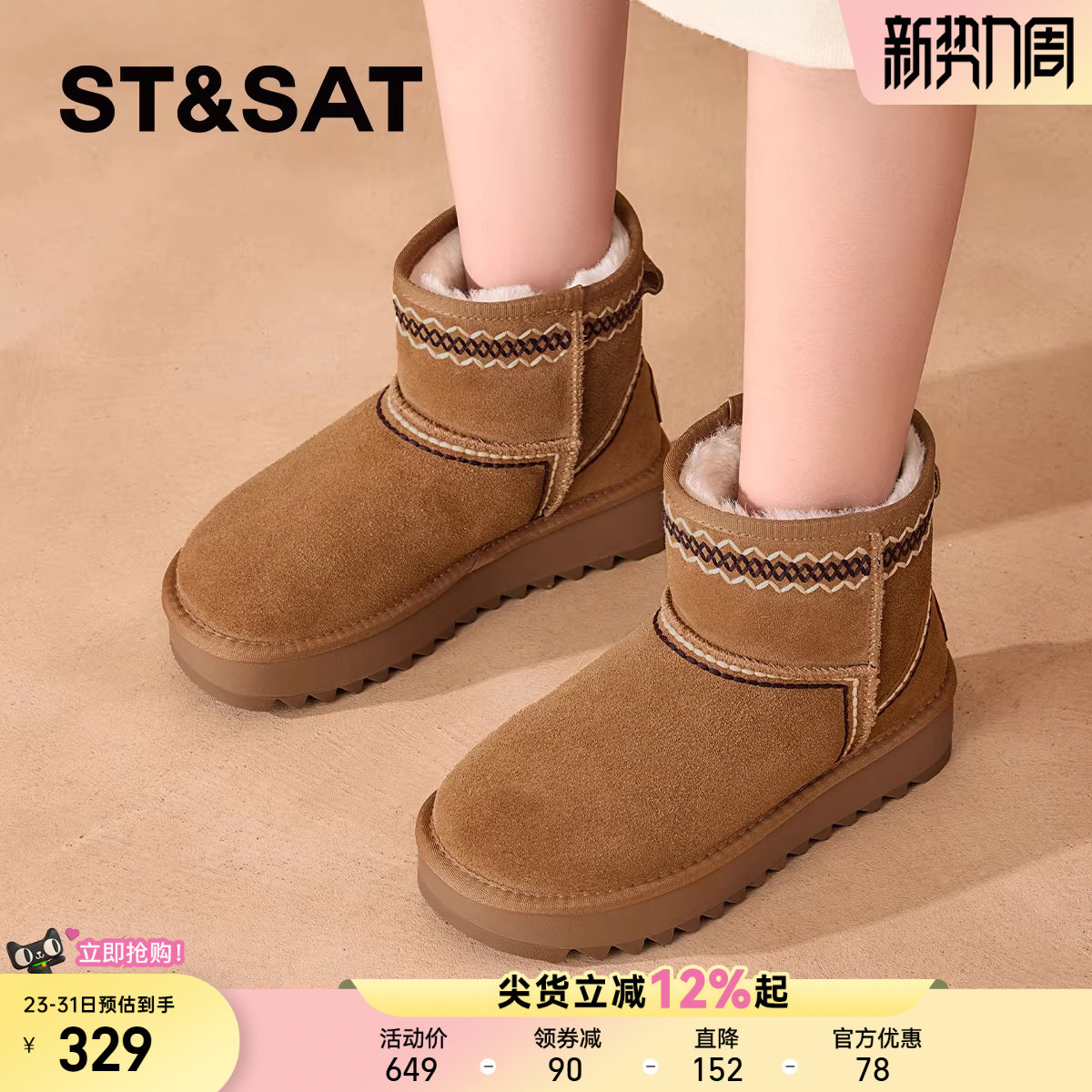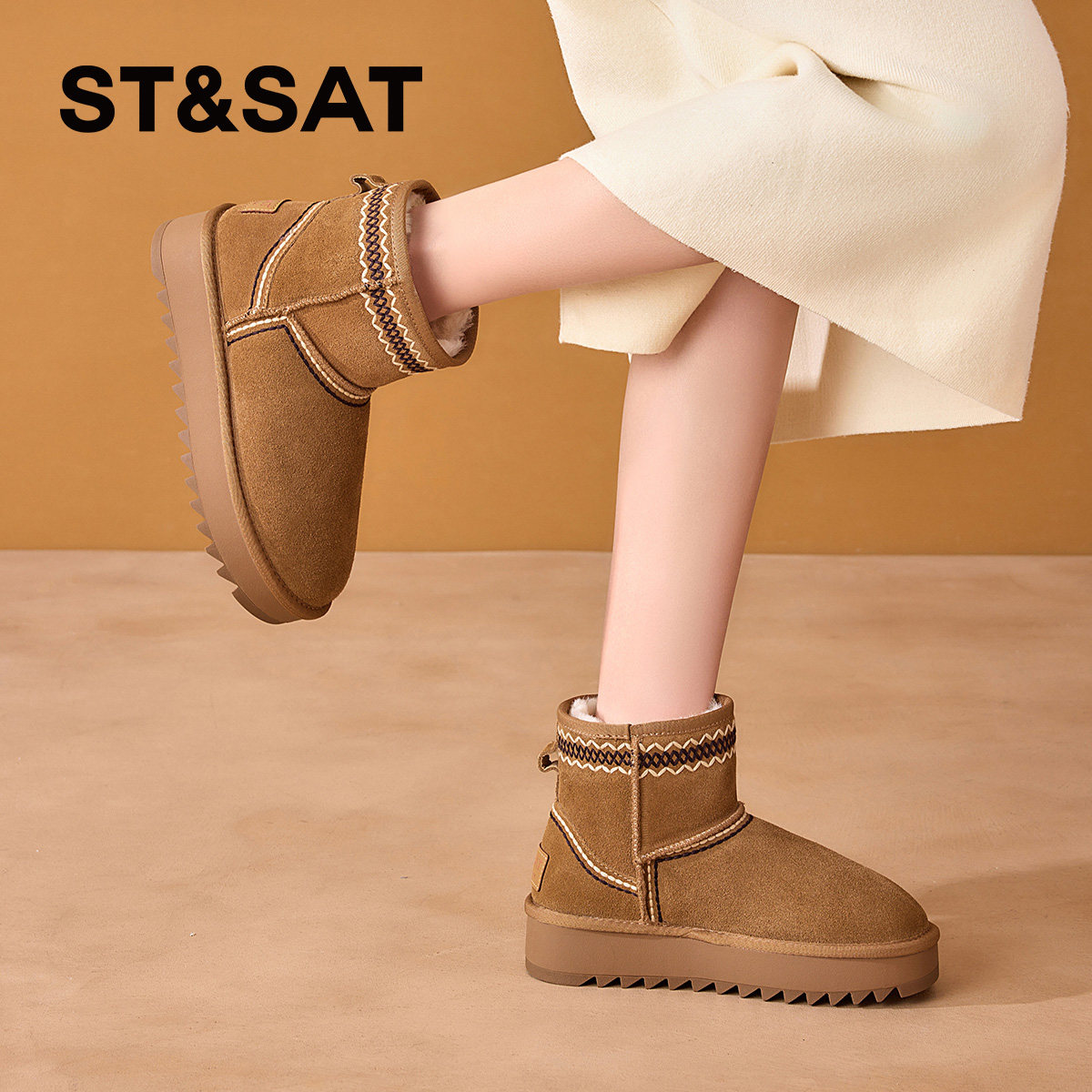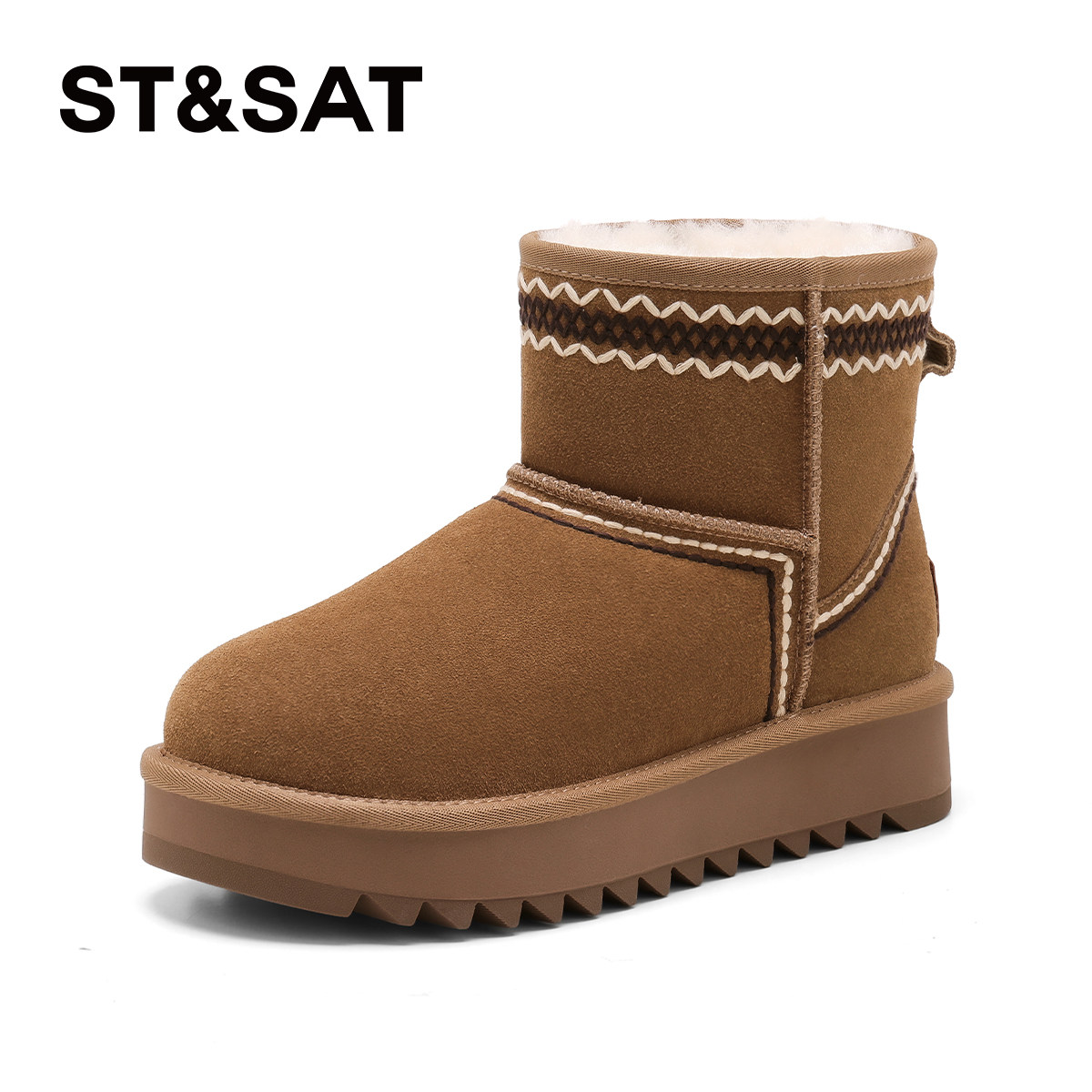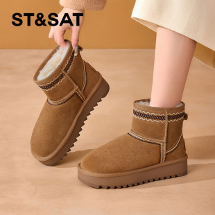 防滑保暖棉鞋 女鞋 加厚靴子女 冬季 星期六加绒厚底雪地靴女2025新款