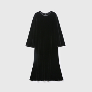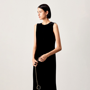 圆领宴会仙女 25新品 真丝丝绒系列 万用小黑裙 长裙连衣裙 法式