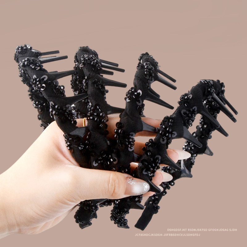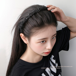 绕珠繁星高颅顶发箍洋气小香风女王时尚 头箍带齿洗脸发卡轻奢头饰