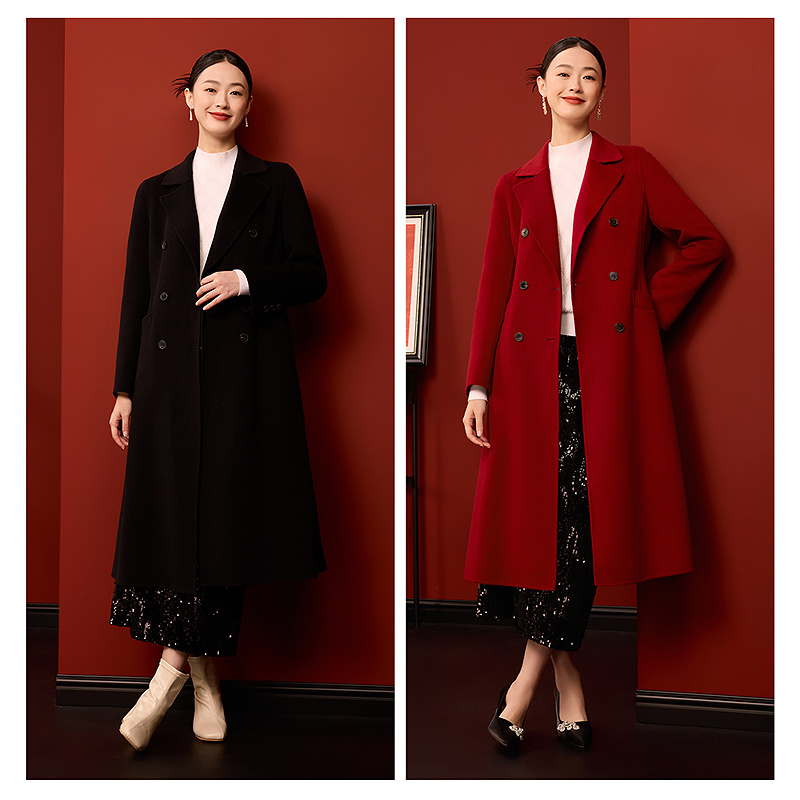 双面呢中长款 黛玛诗冬新款 大衣女羊绒外套DC08015254 商场同款