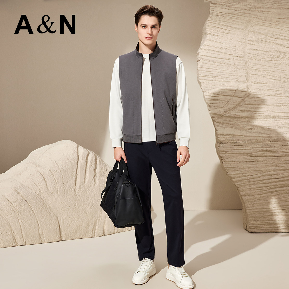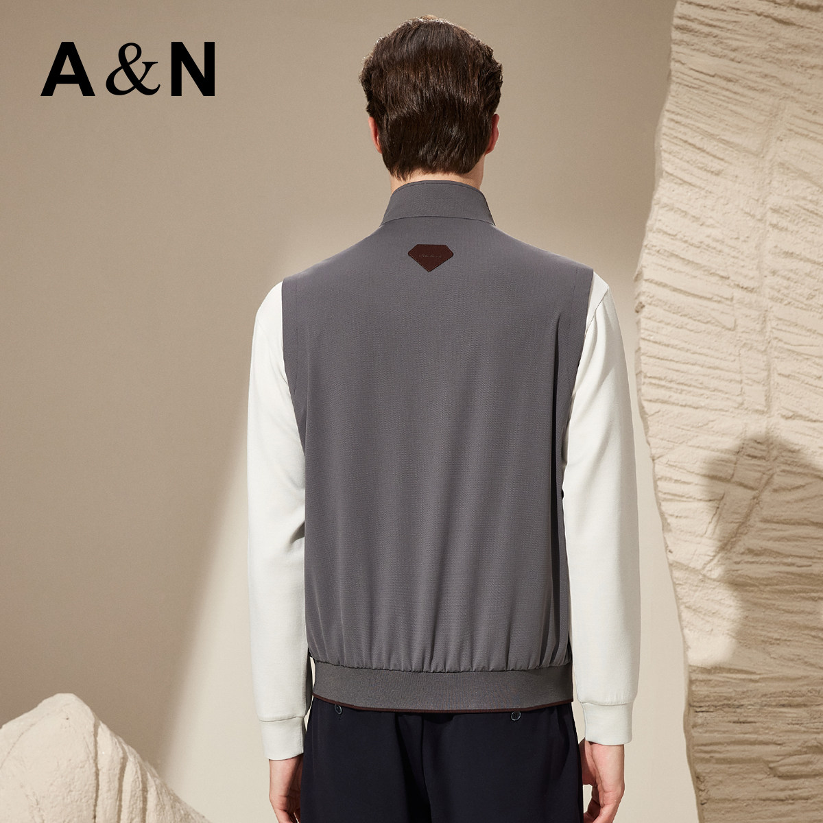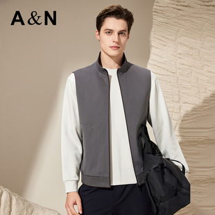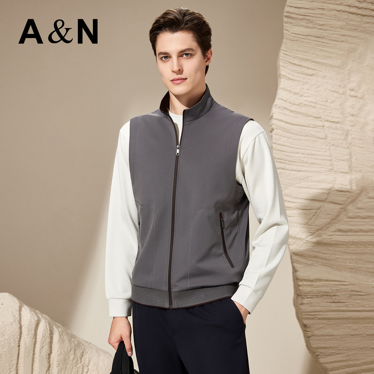 早秋舒适外搭马甲男商务休闲撞色拉链领百搭马夹外套 简约轻奢