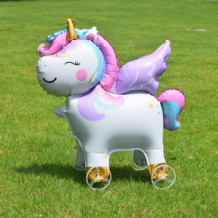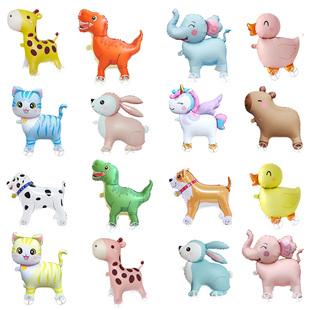 卡通主题哑光动物带轮走路铝膜气球儿童生日派对场景装 饰拍照道具