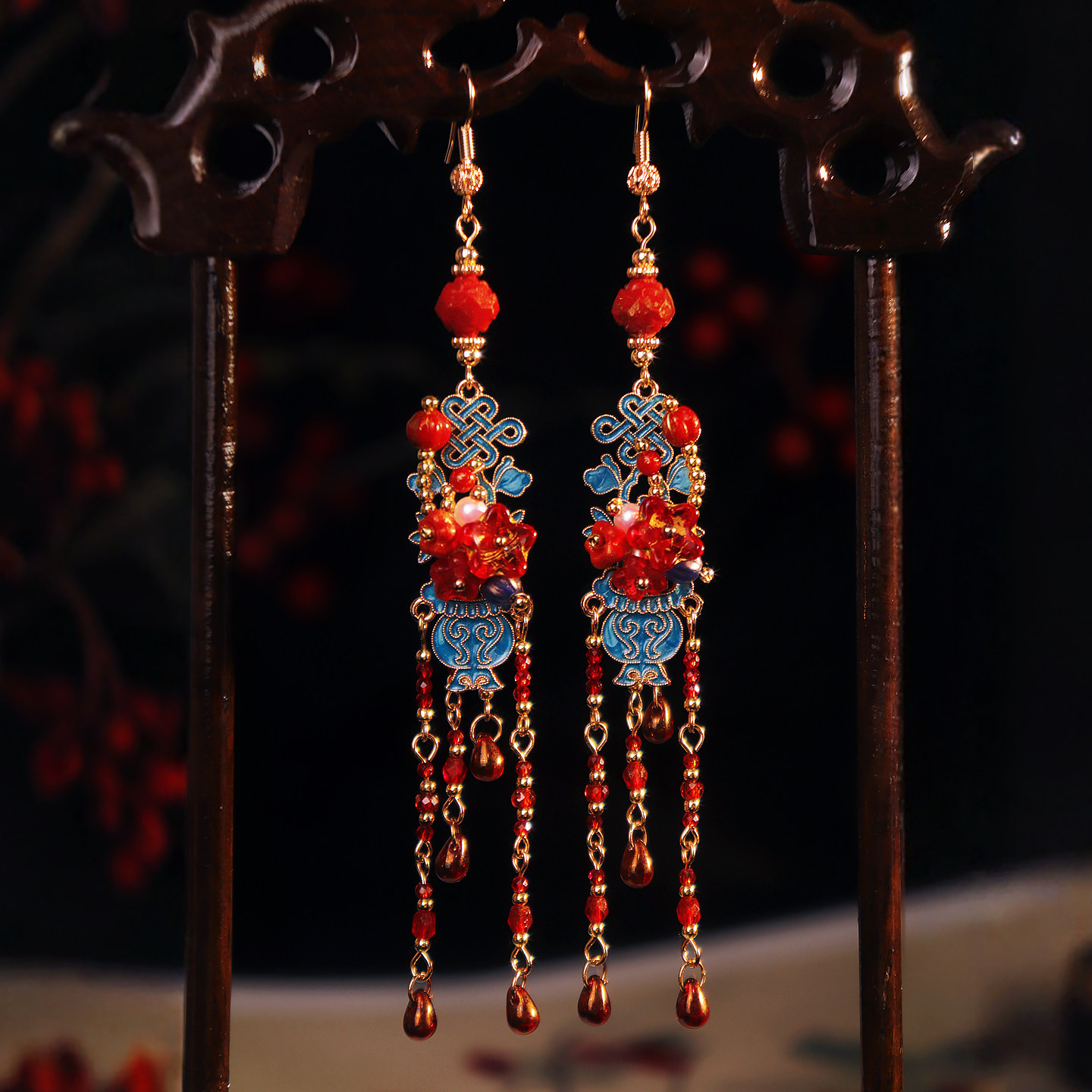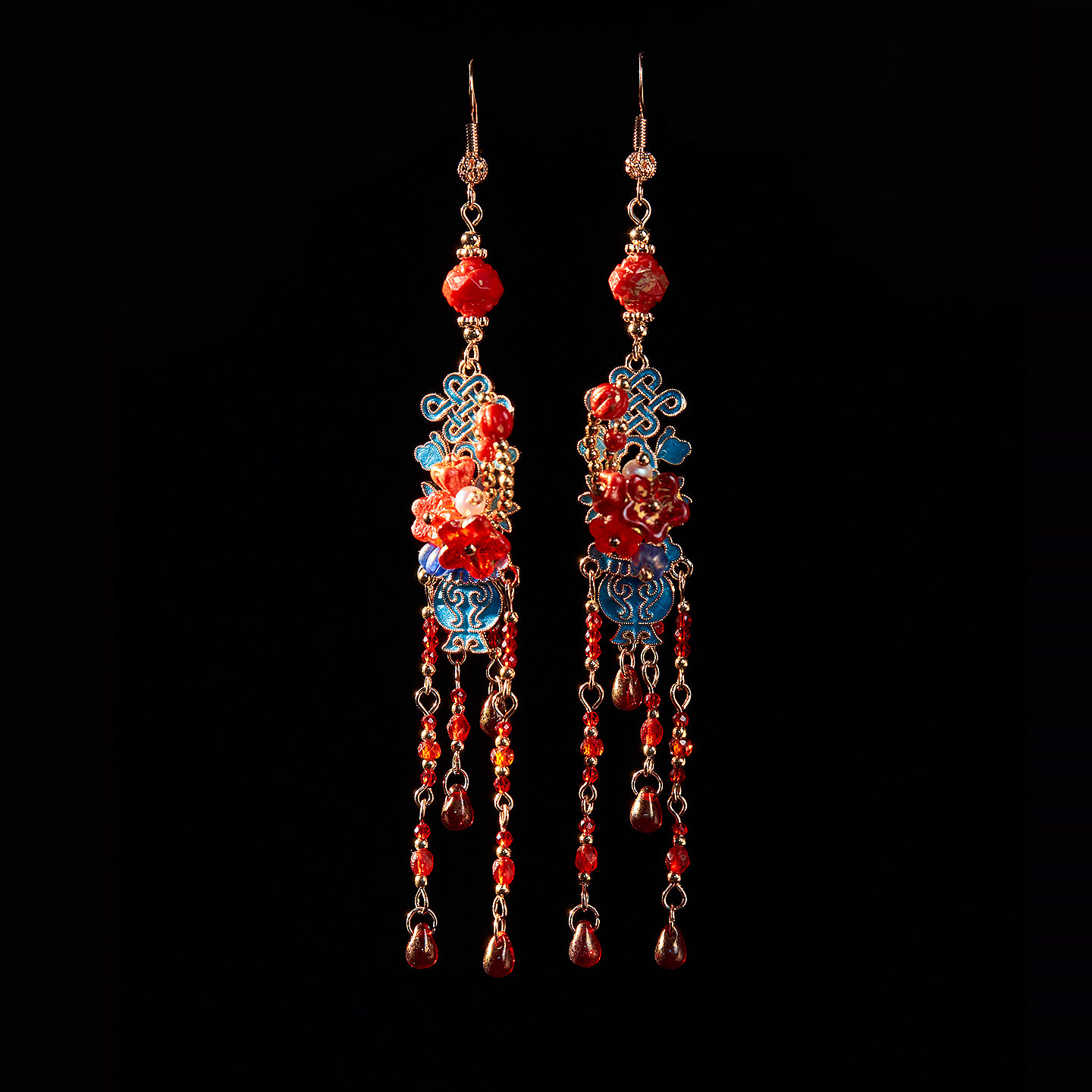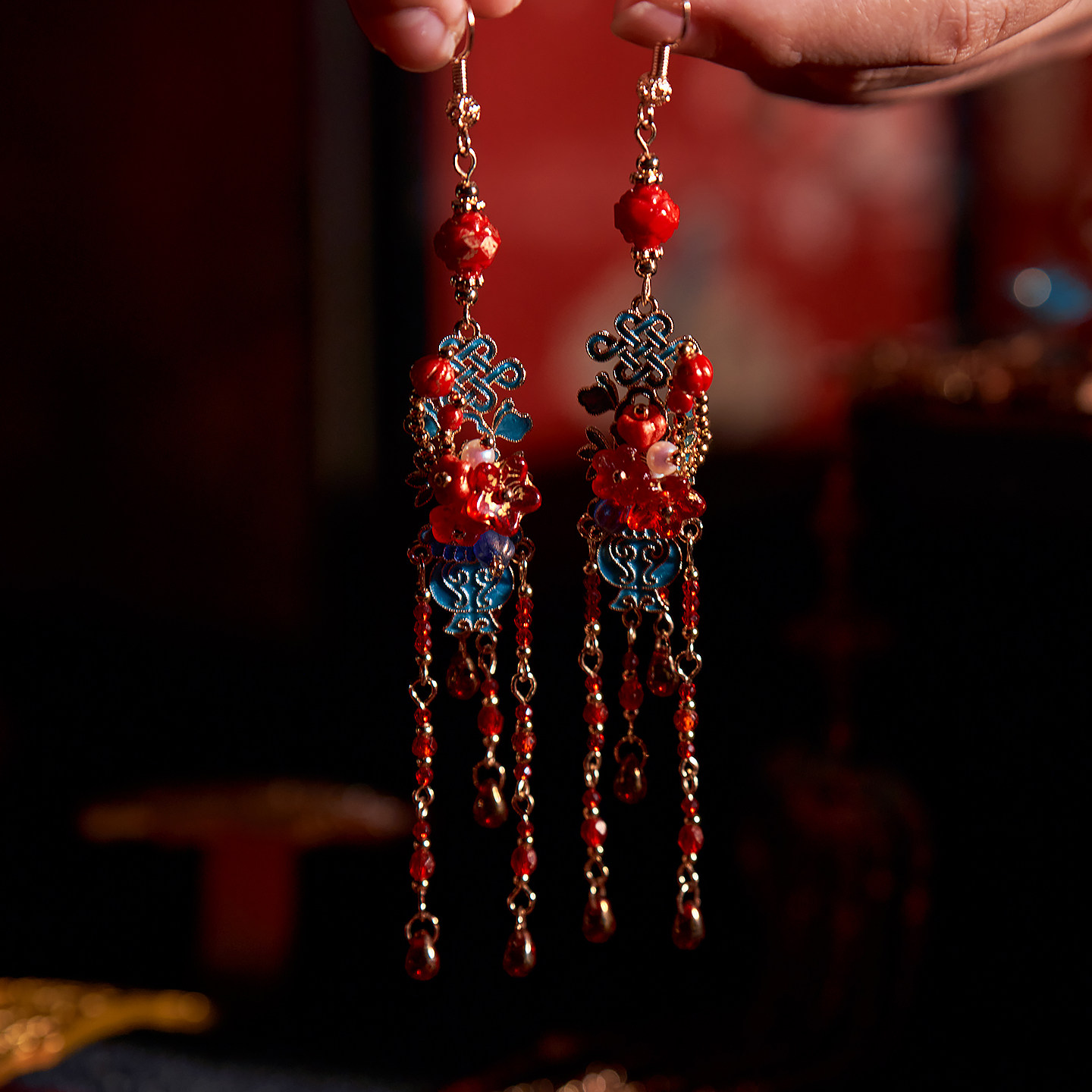 珐琅珍珠小马耳钉女轻奢高级感气质大气耳环2025新款 本命新年耳饰