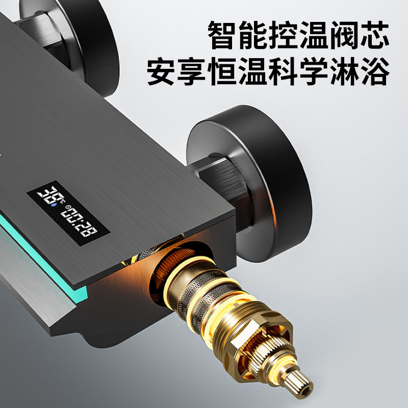 九牧花洒套装 恒温冷热淋浴家用沐浴浴室枪灰色奶白器空气增压淋雨