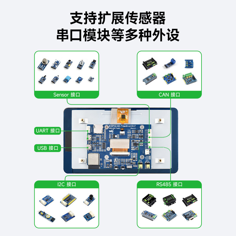 微雪电子ESP32 S3开发板7寸电容触摸屏6种外设接口CAN传感器RS485