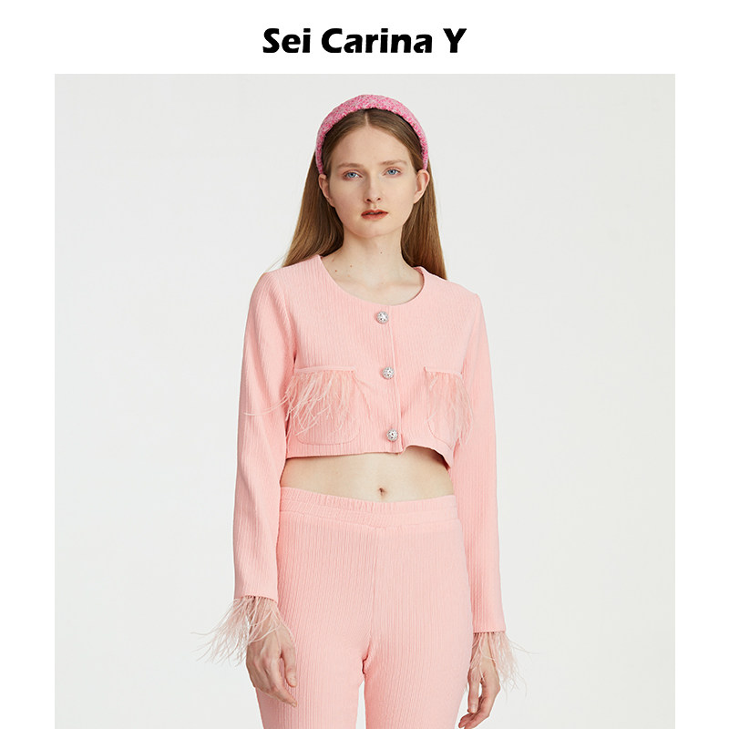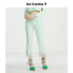 修身 Sei 轻奢直筒九分裤 外套小众时尚 女 CarinaY流苏羽毛长裤