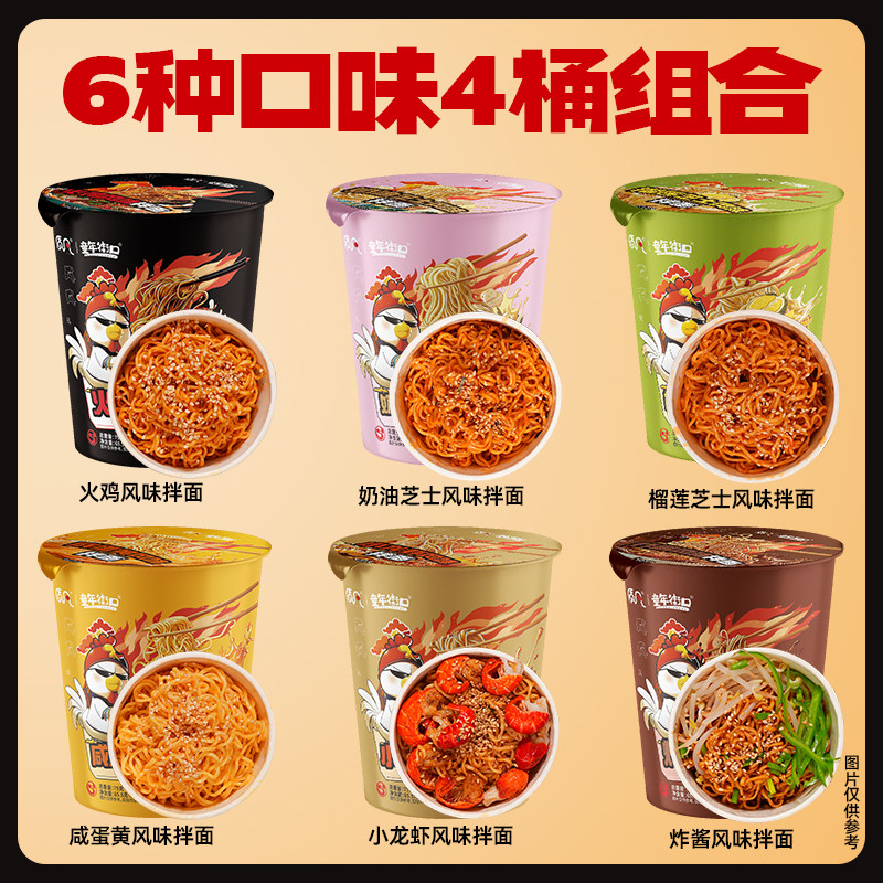 质凡火鸡面咸蛋黄炸酱面泡面方便面免煮速食 6口味 4桶装