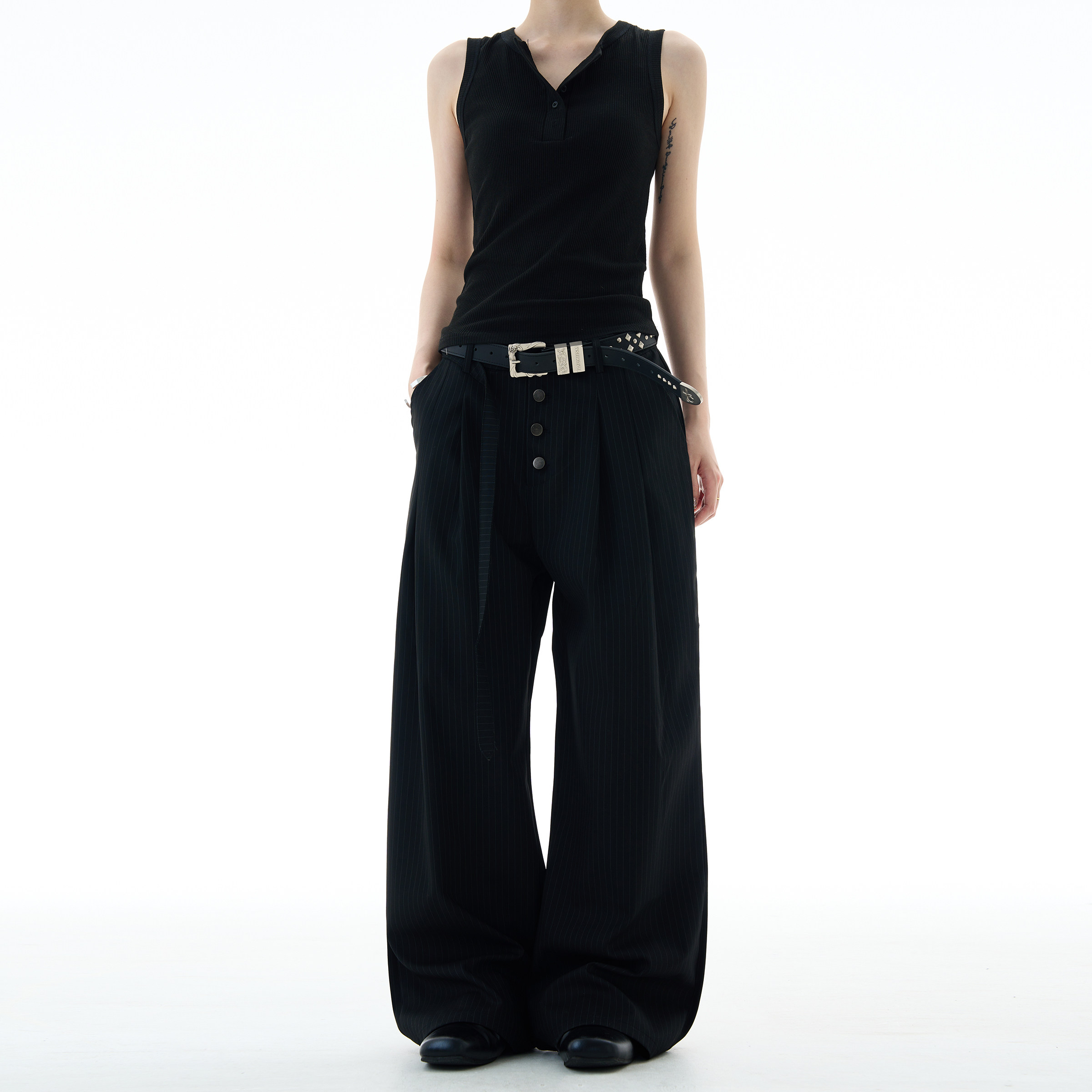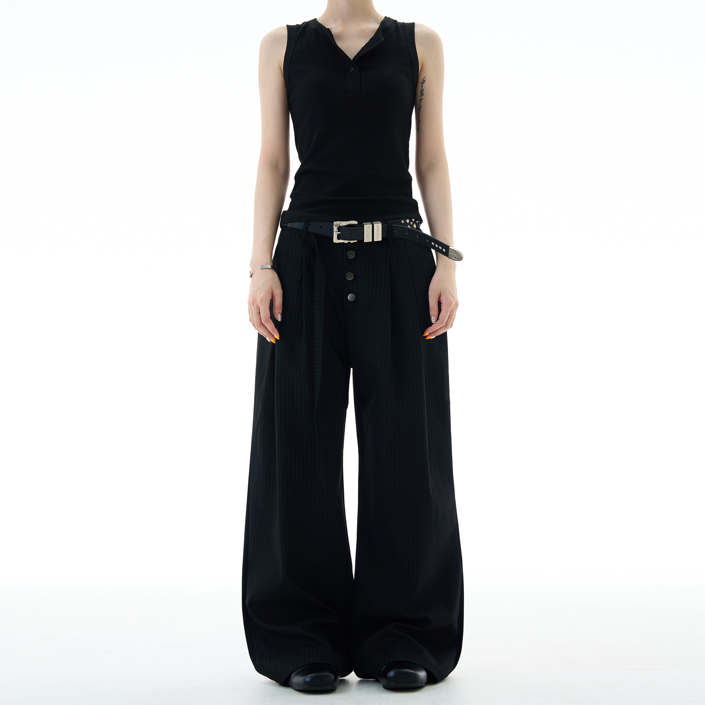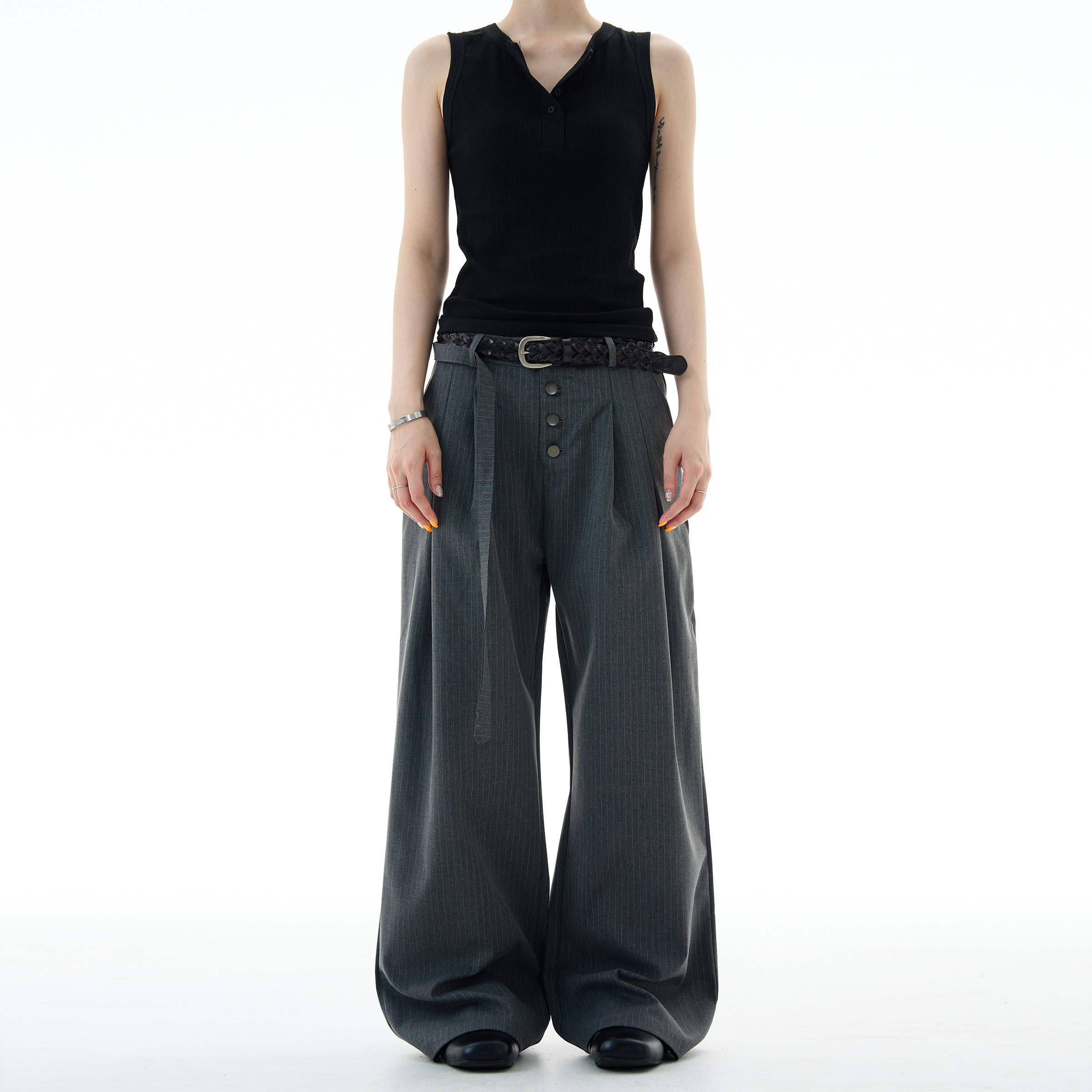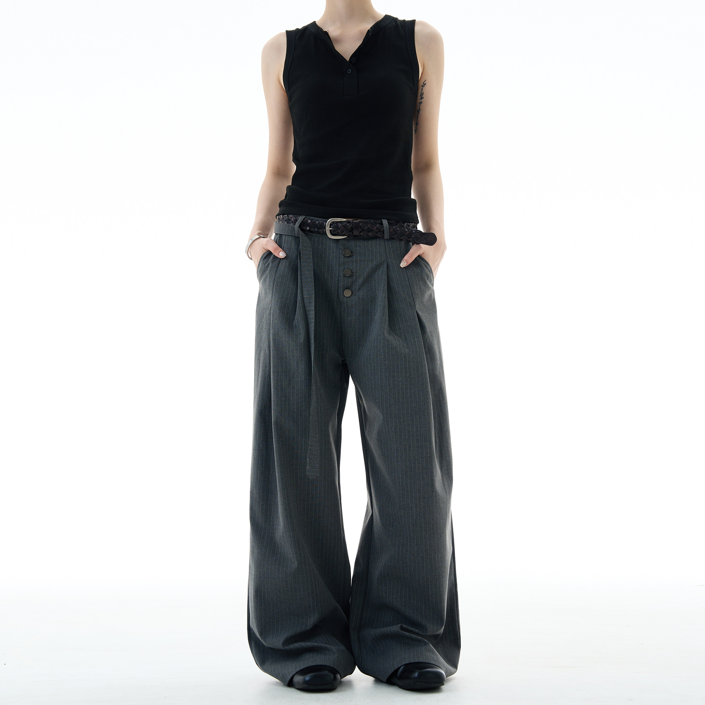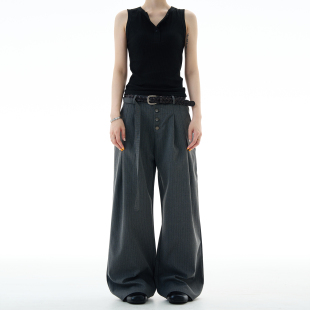 MADWITCH复古垂感条纹休闲西裤 子潮 男女排扣高级设计感绑带阔腿裤
