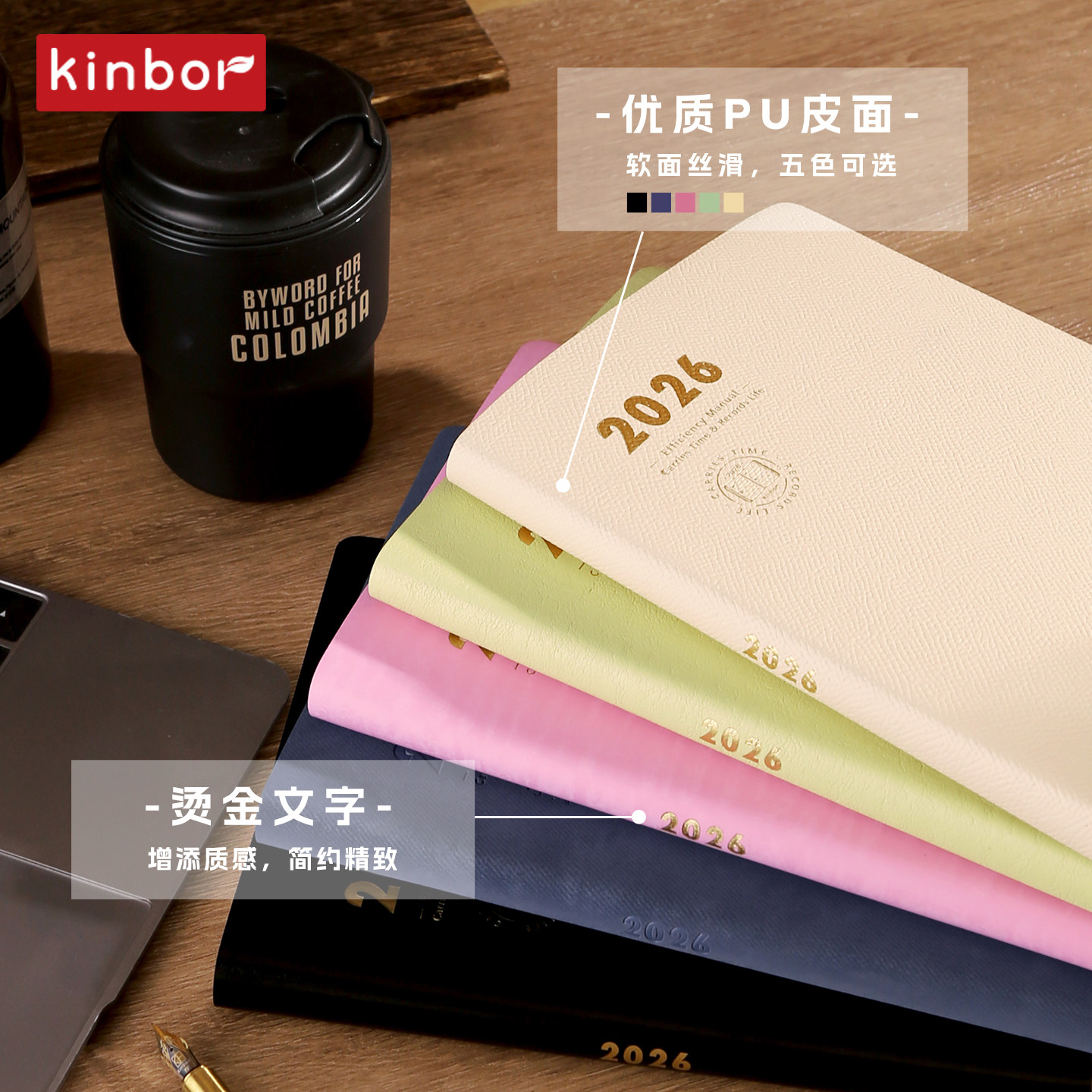 kinbor2026日程本A5效率手册自律打卡本手帐本两日一页每日计划本计划表工作笔记本时间管理PU记事本todolist