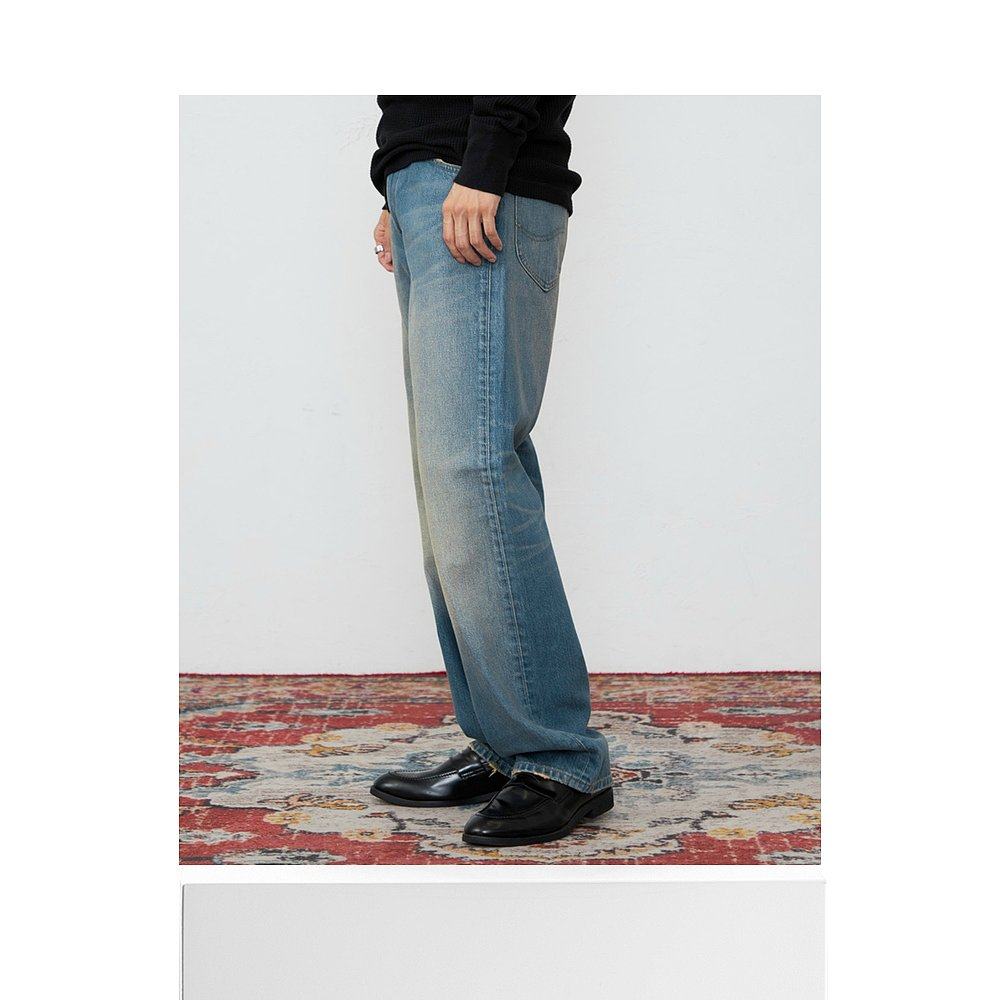 明星同款 牛仔裤 IMXS腰带印花美式 松弛感镰刀裤 男女 复古弯刀裤