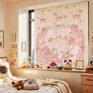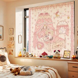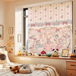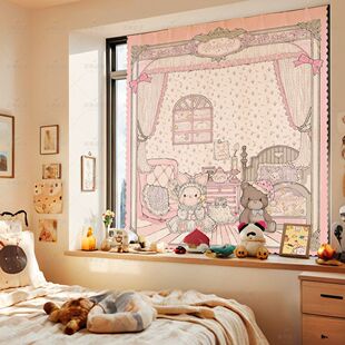 三丽鸥可爱卡通魔术贴窗帘布免打孔短窗帘短帘子宿舍遮光简易帘