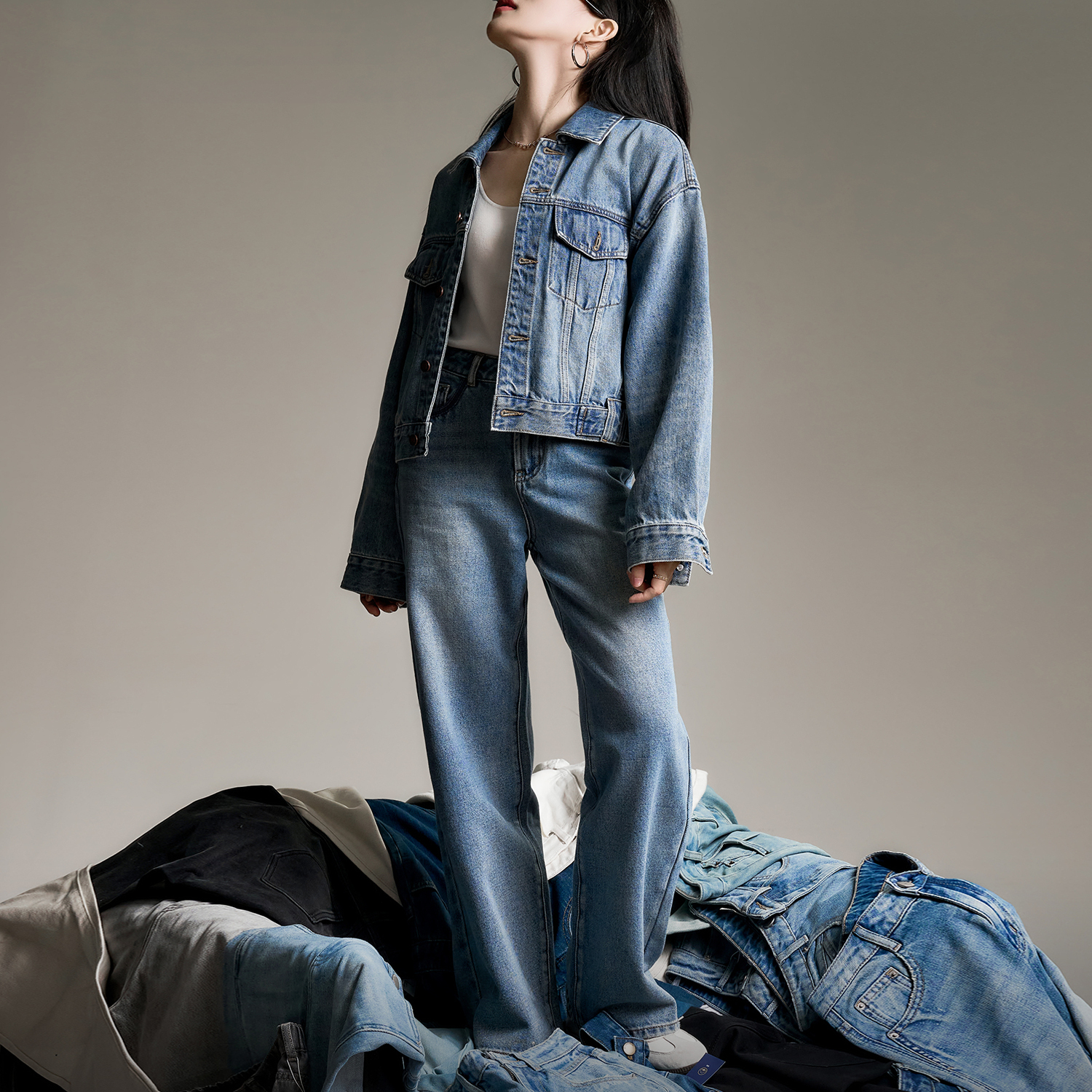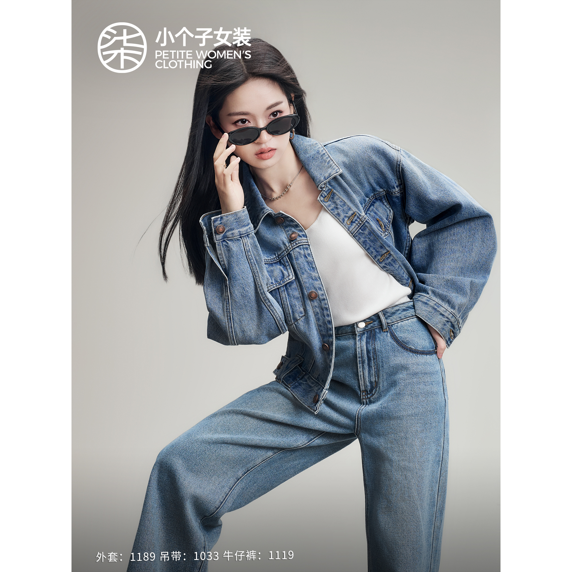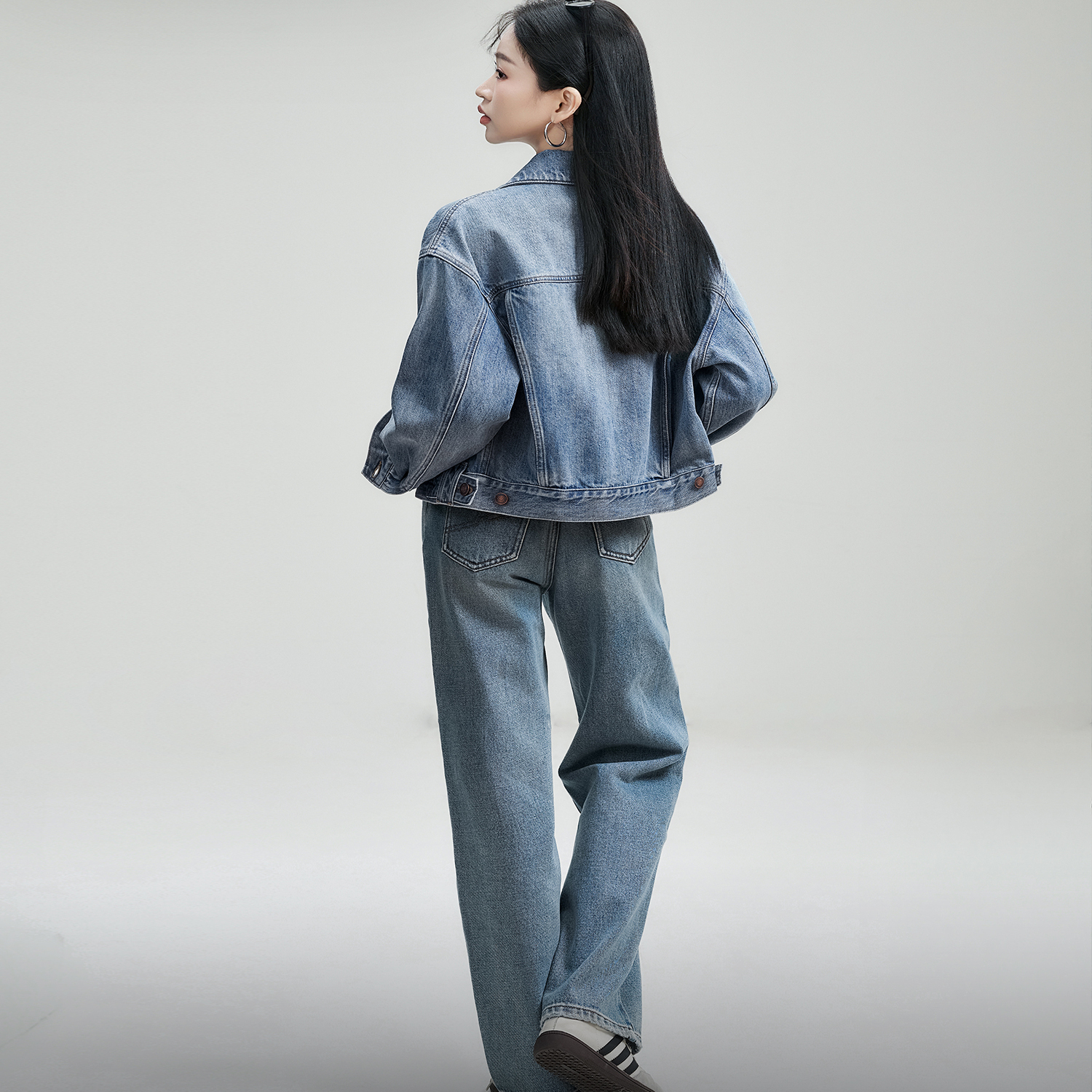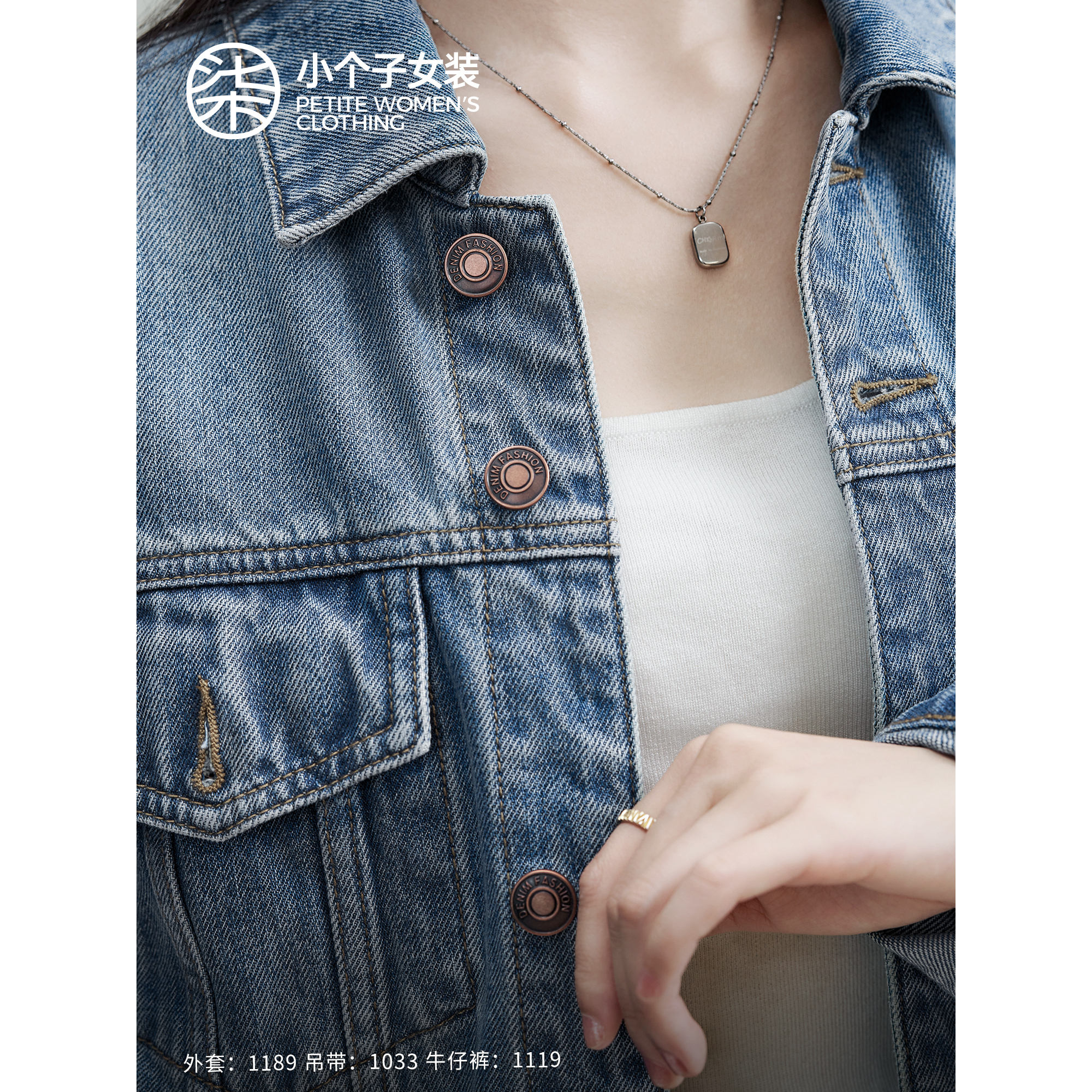 复古金属扣显瘦百搭1189 小个子港风做旧蓝牛仔外套女短款 大柒