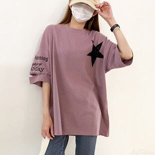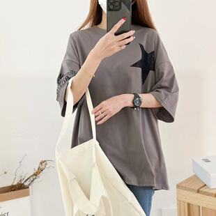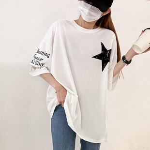 印花短袖 百搭宽松休闲上衣t恤圆领不规则剪裁韩版 新款 2025年夏季