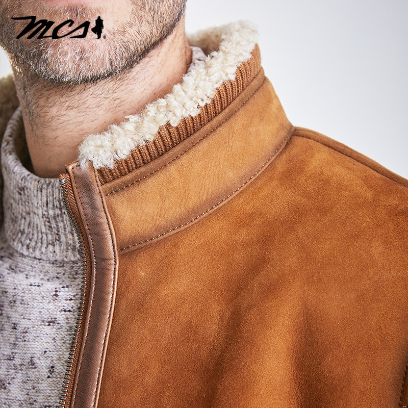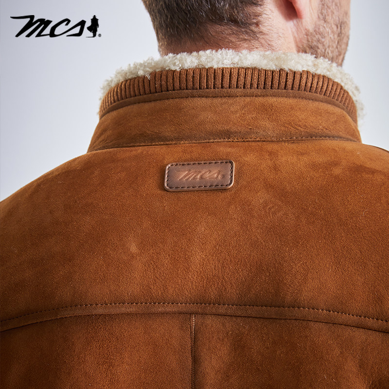 立领合身皮毛一体做旧机车羊皮皮衣 美式 MCS男装 源自万宝路秋冬款