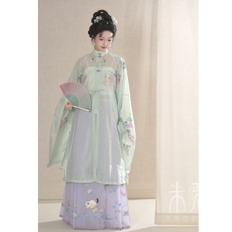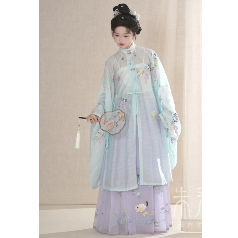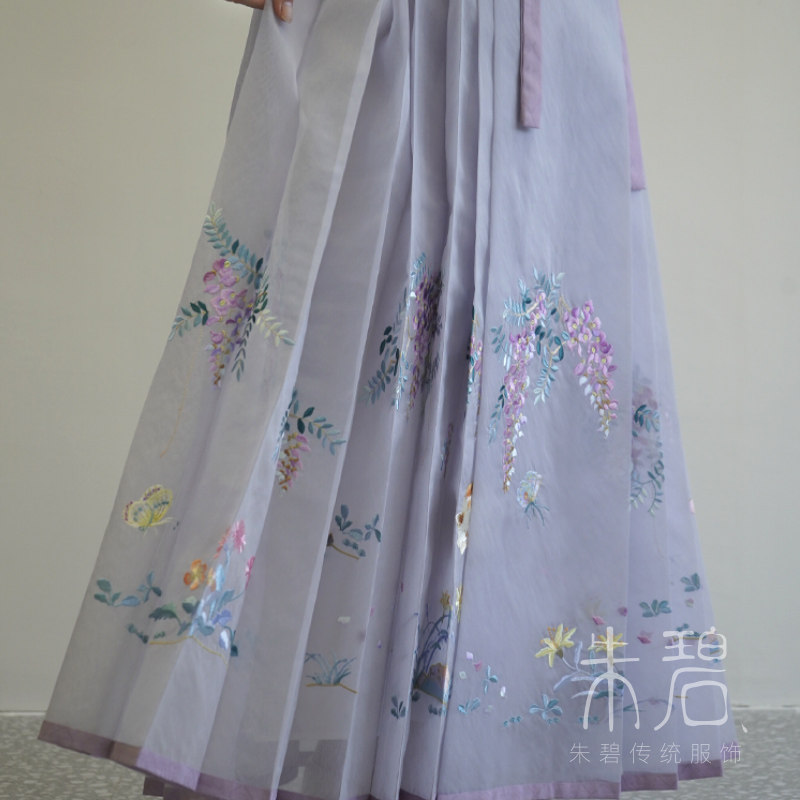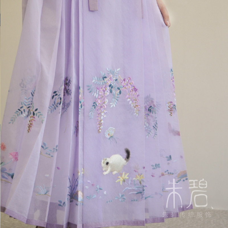 马面裙 明制绣花竖领对襟长衫 宋百迭 紫藤猫蝶系列 一年景