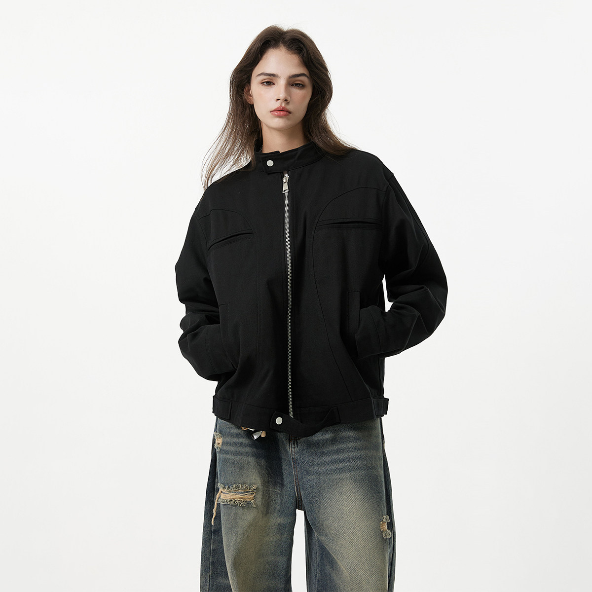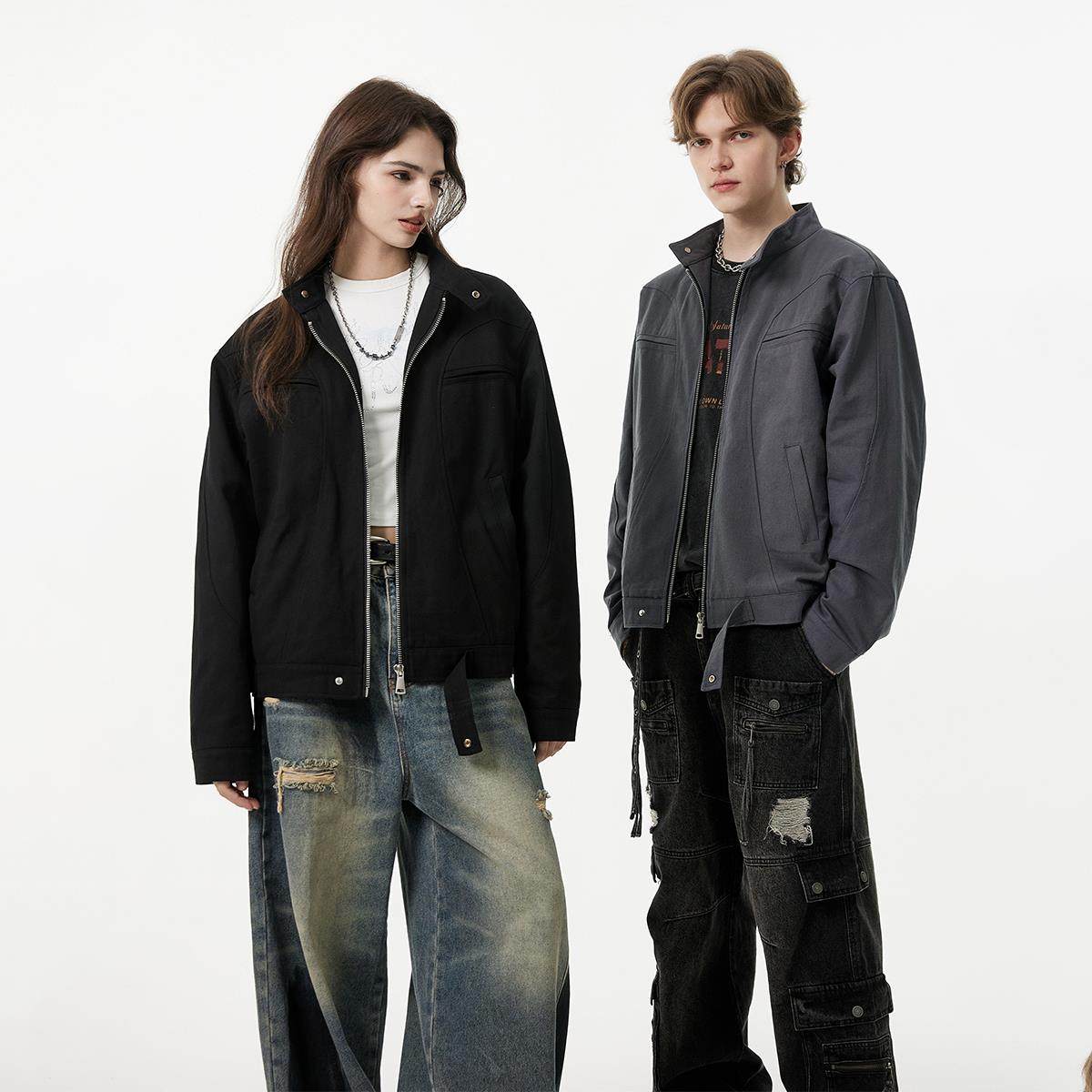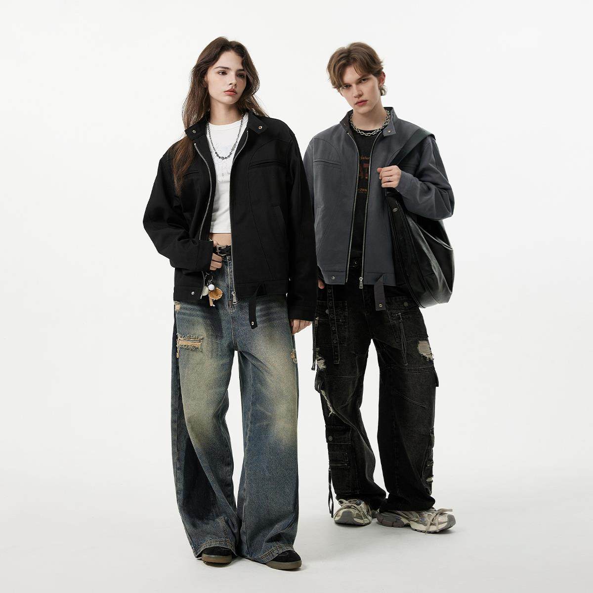 裤 CulturE小众复古做旧牛仔套装 夹克外套废土重磅拉链大口袋工装